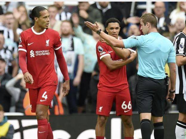 وتلقى قائد ليفربول فان دايك بطاقة حمراء مباشرة من قبل الحكم جون بروكس بعد مرور نصف ساعة تقريبا على بداية مباراة الأحد الماضي بسبب خطأ ضد ألكسندر إيساك لاعب نيوكاسل عند حافة منطقة الجزاء.