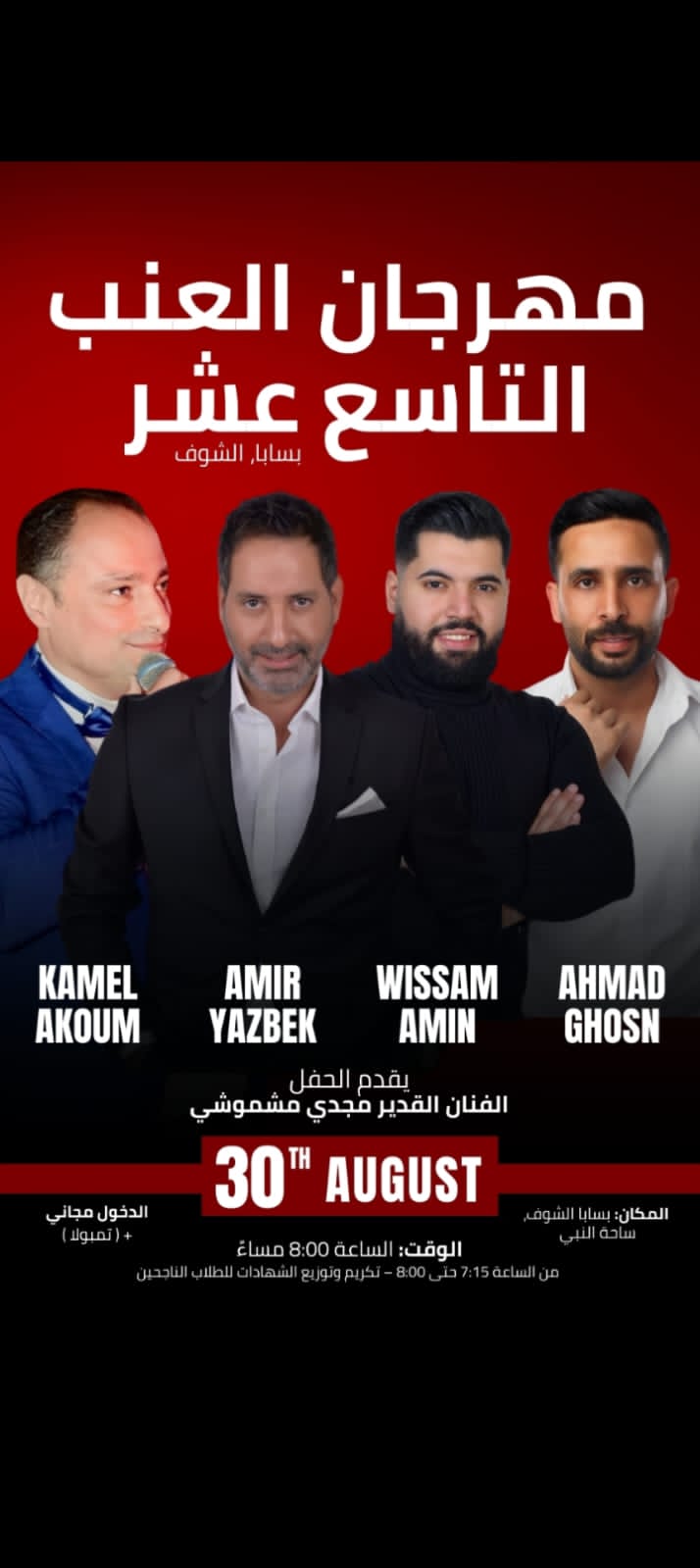 هذا الحدث الذي كان تقليدًا سنويًا تشتهر به بسابا، وينتظره أهلها وجيرانها، يُقام هذه السنة بمشاركة نخبة من الفنانين اللبنانيين، أبرزهم النجم أمير يزبك، الفنان وسام أمين، الفنان أحمد غصن، الفنان كامل عاكوم، ويُقدّم الحفل الممثل القدير مجدي مشموشي، بحضوره المميز.