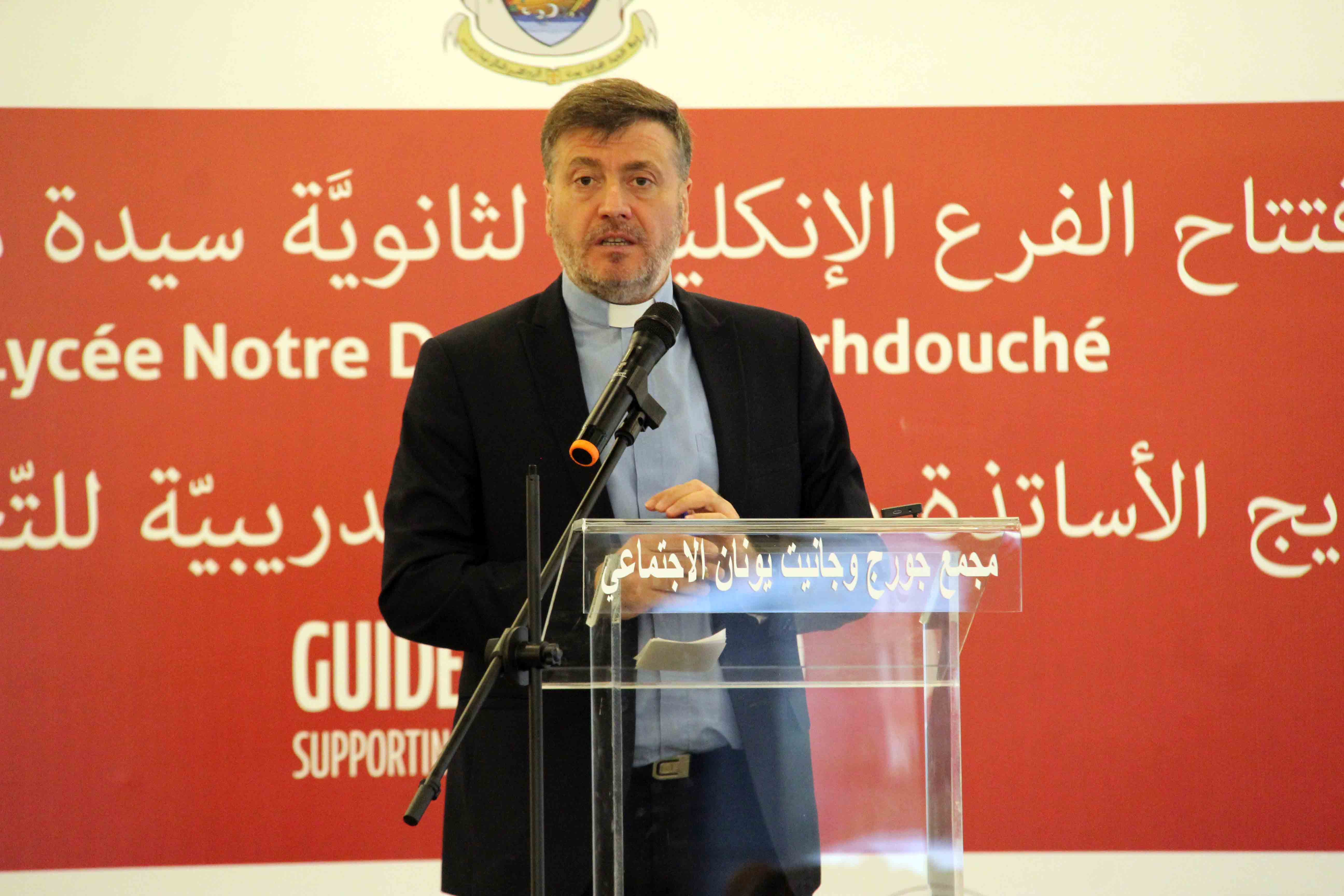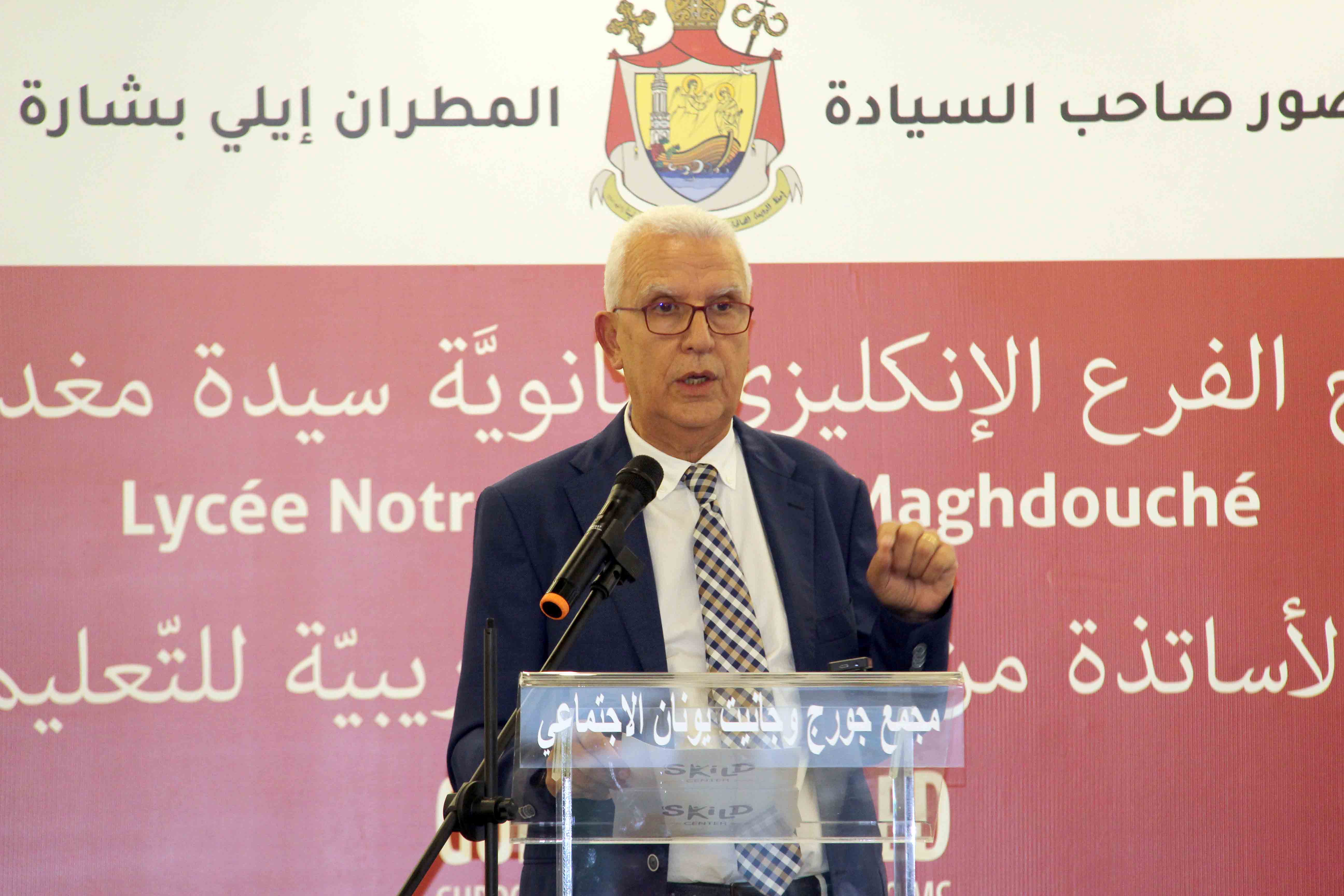 أمين عام المدارس الكاثوليكية الأب يوسف نصر اكد ان الإستثمار في التربية هو الوسبلة الأنجع لبناء وطن متقدم مزدهر يعيش في سلام . وقال: لأن لدينا هذا الإيمان بالتربية ، وضعت الأمانة العامة للمدراس الكاثوليكية رؤيتها للتربية : تربية رقمية معاصرة تستخدم الذكاء الإصطناعي ولكن ليس على حساب القيم الأخلاقية والإنسانية ولا على حساب كرامة الانسان . تربية خضراء تحترم البيئة وهذا البيت المشترك الذي نعيش فيه . تربية دامجة تؤمن فرصة التعلم لكل تلميذ وبشكل خاص لذوي الإحتياجات الخاصة . لذلك نحيي مبادرة مدرسة سيدة مغدوشة على هاتين الخطوتين المهمتين افتتاح فرع الانكليزي وتخريج أساتذة في التعليم الدامج . ونحيي جامعة سيدة اللويزة وفريقها التعليمي والدكتور نبيل قسطة مع فريق سكيلد . ونتمنى ان تعمم هذه المبادرة وتصبح وطنية وان يكون كل التعليم دامجاً. ونحن مستعدون لأن نتعاون مع الجامعات واصحاب الاختصاص لنؤمن التدريب اللازم لكل الأساتذة حتى يستطعيوا ان ينخرطوا في هذا المشروع التربوي الدامج.