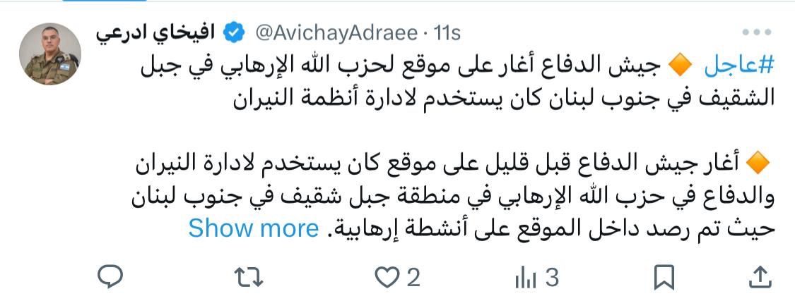 سلسلة غارات فجرا تستهدف تلة علي الطاهر قرب النبطية وأضرار جسيمة بالممتلكات القريبة والجيش الاسرائيلي يتبنى