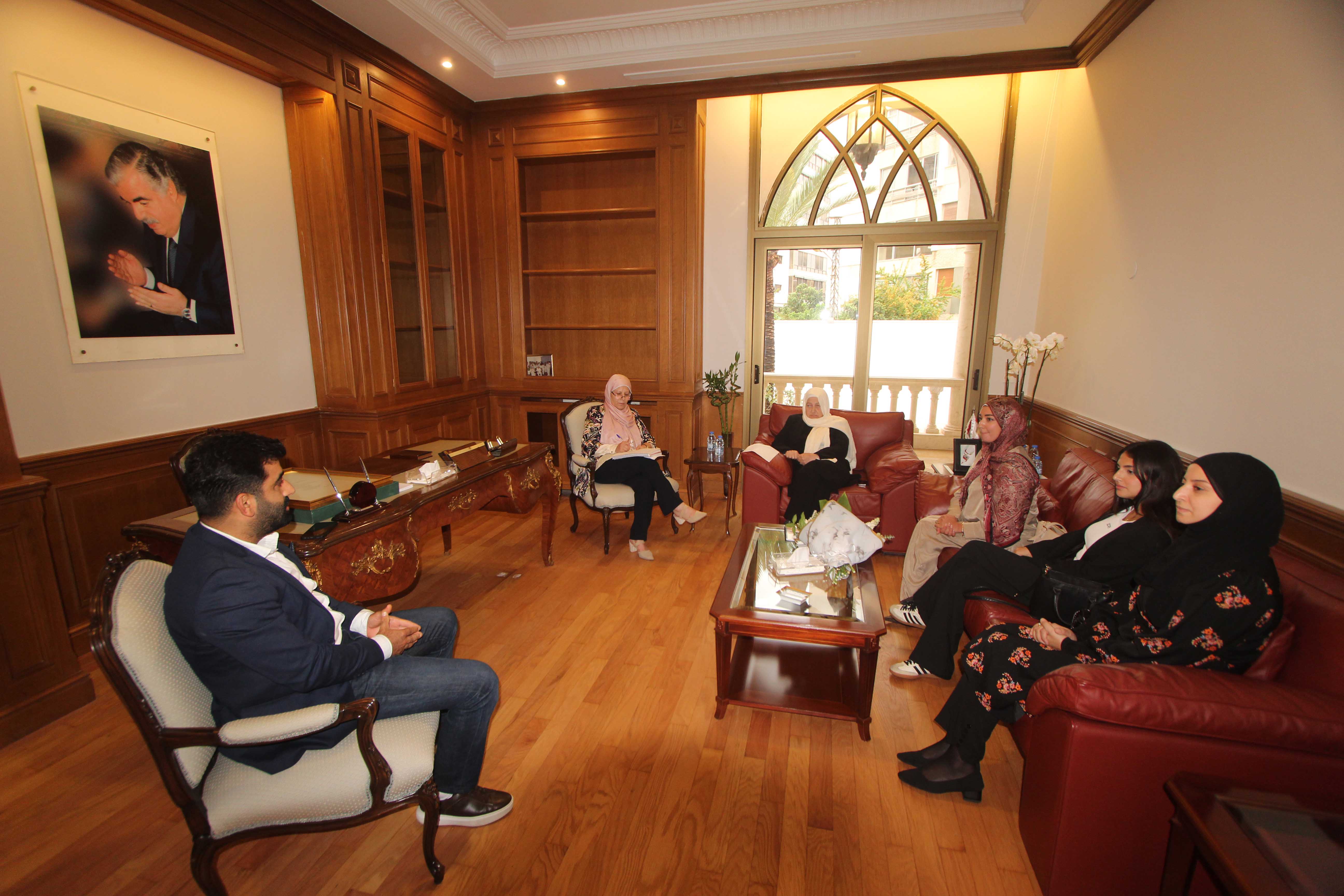 وأطلع الوفد السيدة الحريري على عمل وبرامج الجمعية المتخصصة في مجال التربية والتدريب التربوي والدعم النفسي والإجتماعي .