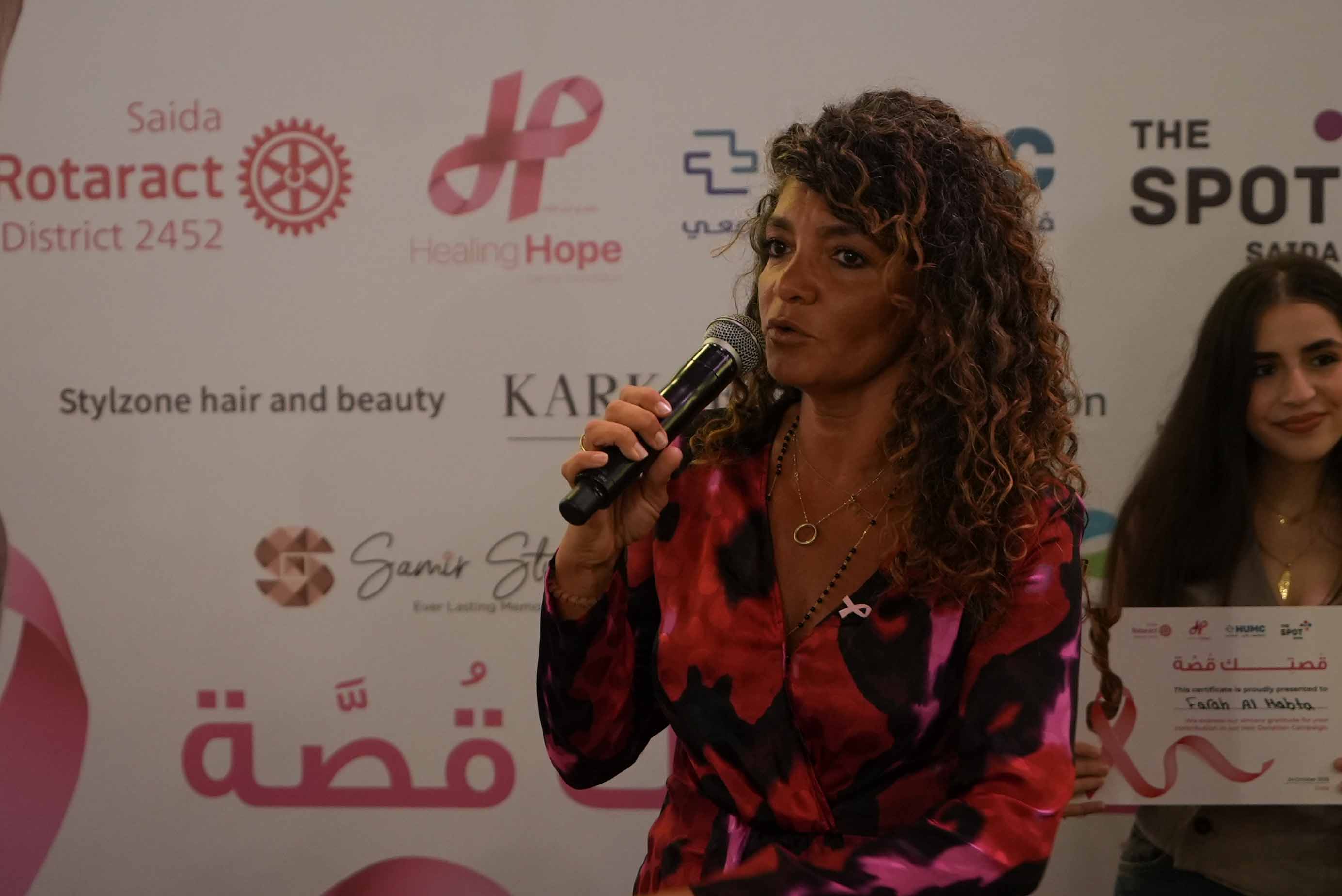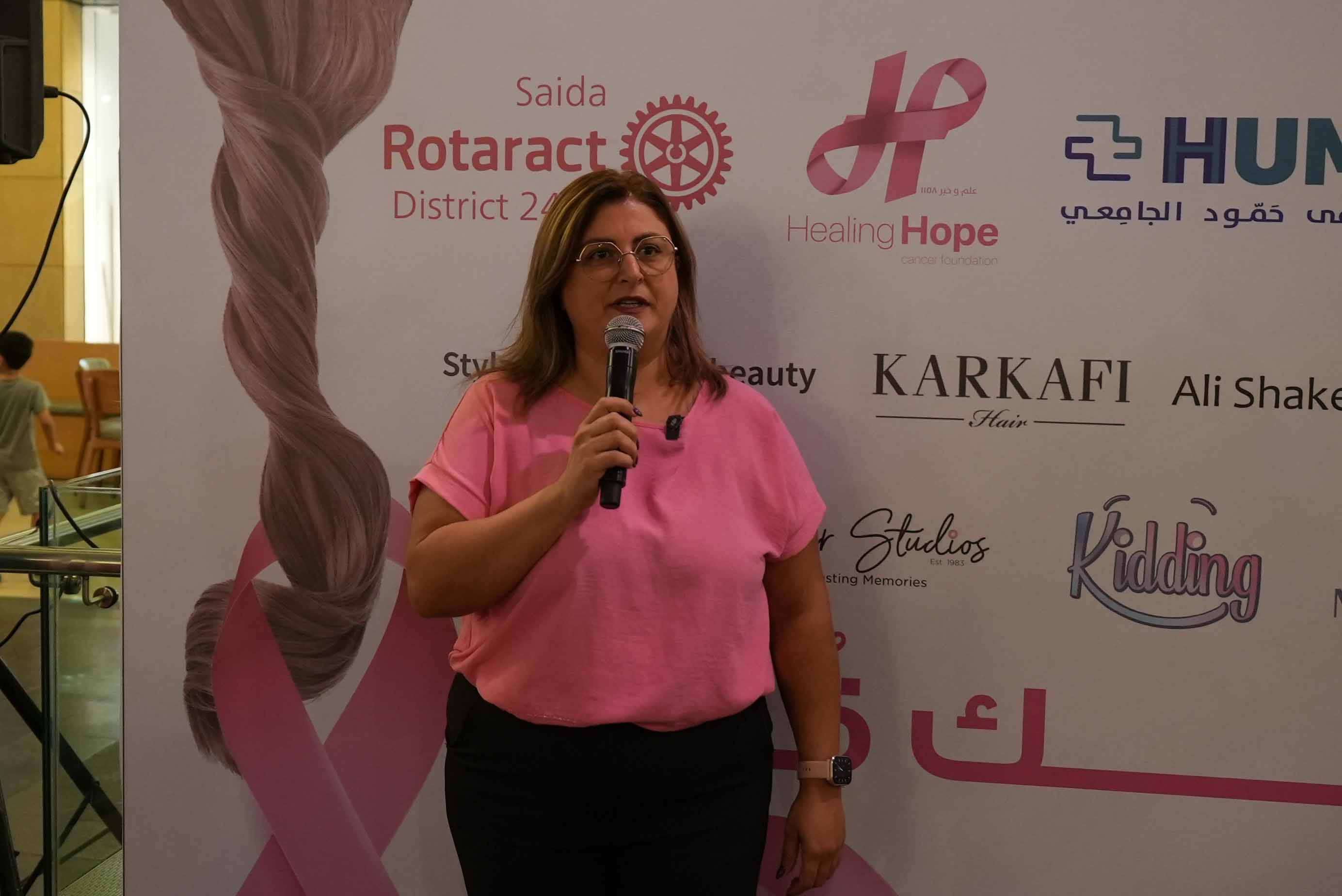 لمناسبة الشهر العالمي للتوعية حول سرطان الثدي، نظمت جمعية " Healing Hope ونادي "روتاراكت صيدا" بالتعاون مع" Spot Mall -صيدا " ومستشفى حمود الجامعي، حملة للتبرع بالشعر للمصابات بالمرض، تحت عنوان "قصّتك قصّة "، بحضور جمع من داعمي الحملة والشخصيات من بينهم الناجية من سرطان الثدي السيدة ليلى عجم . وكان في استقبالهم ممثلو الجهات المنظمة .
