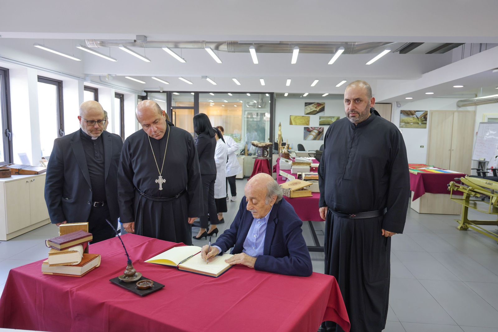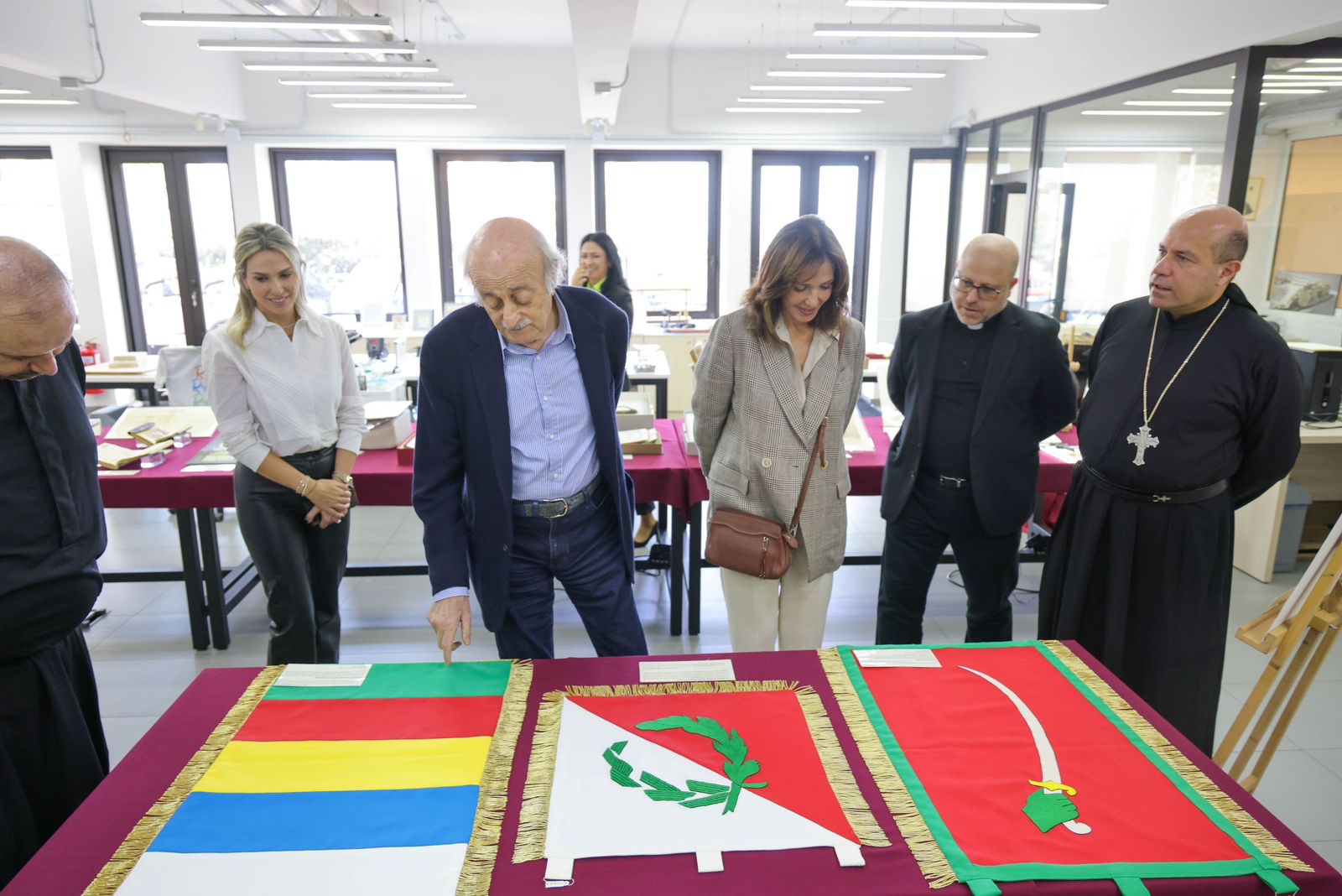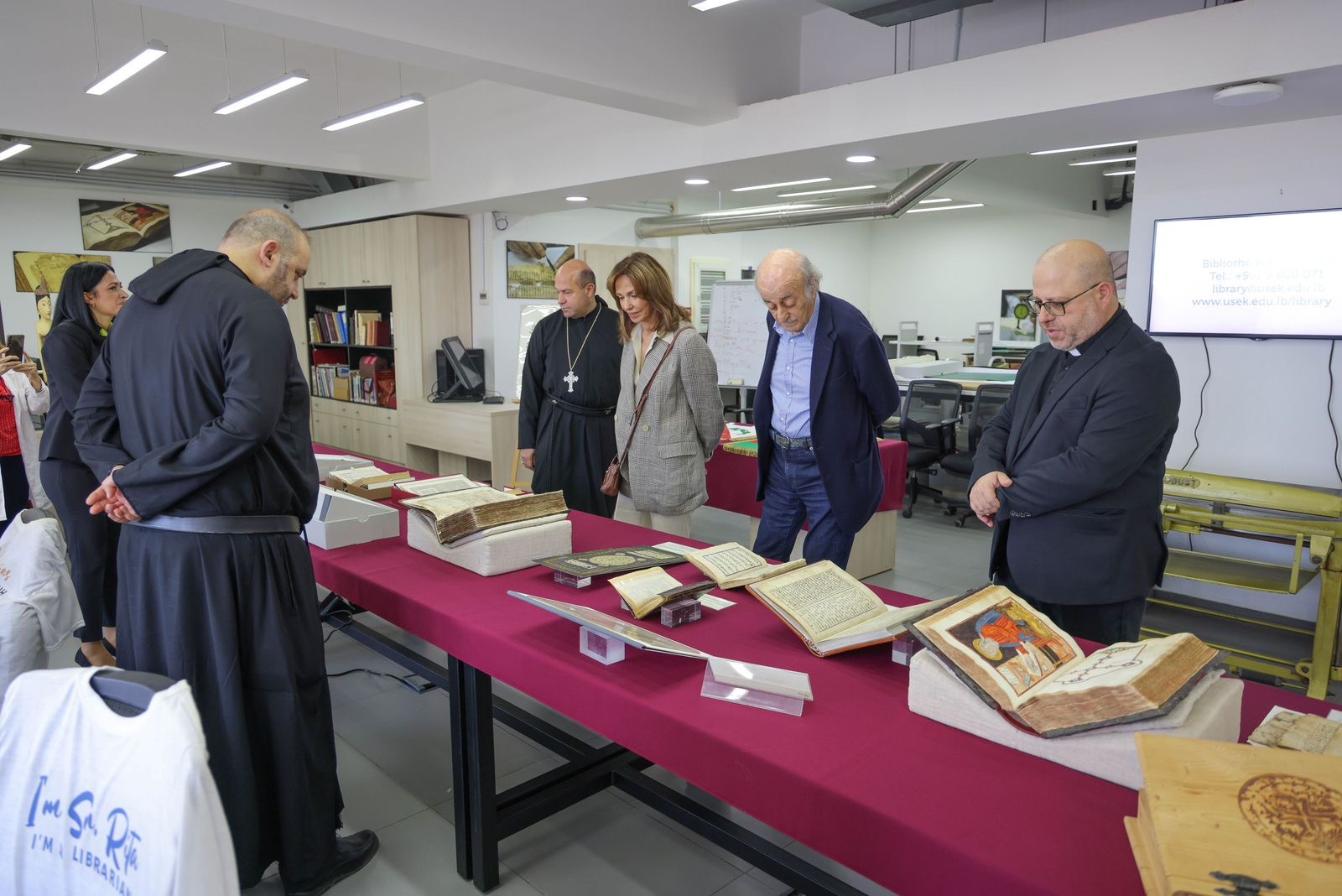 وجال جنبلاط وعقيلته في أرجاء الجامعة، وخصوصًا في المكتبة التي تحتوي على إرثٍ كبيرٍ من تاريخ لبنان، واطّلعا على كيفيّة معالجة المخطوطات والخرائط والكتب القديمة، كما زارا متحف الجامعة الذي يحتوي على كميّة كبيرة من اللوحات الفنيّة لأبرز الرسّامين اللبنانيّين، من أجيالٍ ومدارس مختلفة.