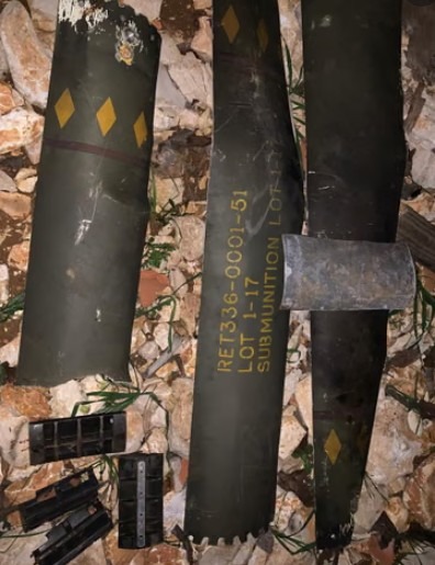 تم التحقق من صور بقايا أول ذخيرة عنقودية، وهي ذخيرة متطورة مضادة للأفراد من طراز M999 Barak Eitan عيار 155 ملم، أنتجتها شركة Elbit Systems المتعاقدة مع وزارة الدفاع في عام 2019، من قبل ستة خبراء أسلحة مختلفين. تطلق كل قذيفة مدفعية من طراز M999 تسع ذخائر صغيرة تنفجر إلى 1200 شظية من التنغستن، وفقاً لدليل الجيش الأميركي حول هذا السلاح.