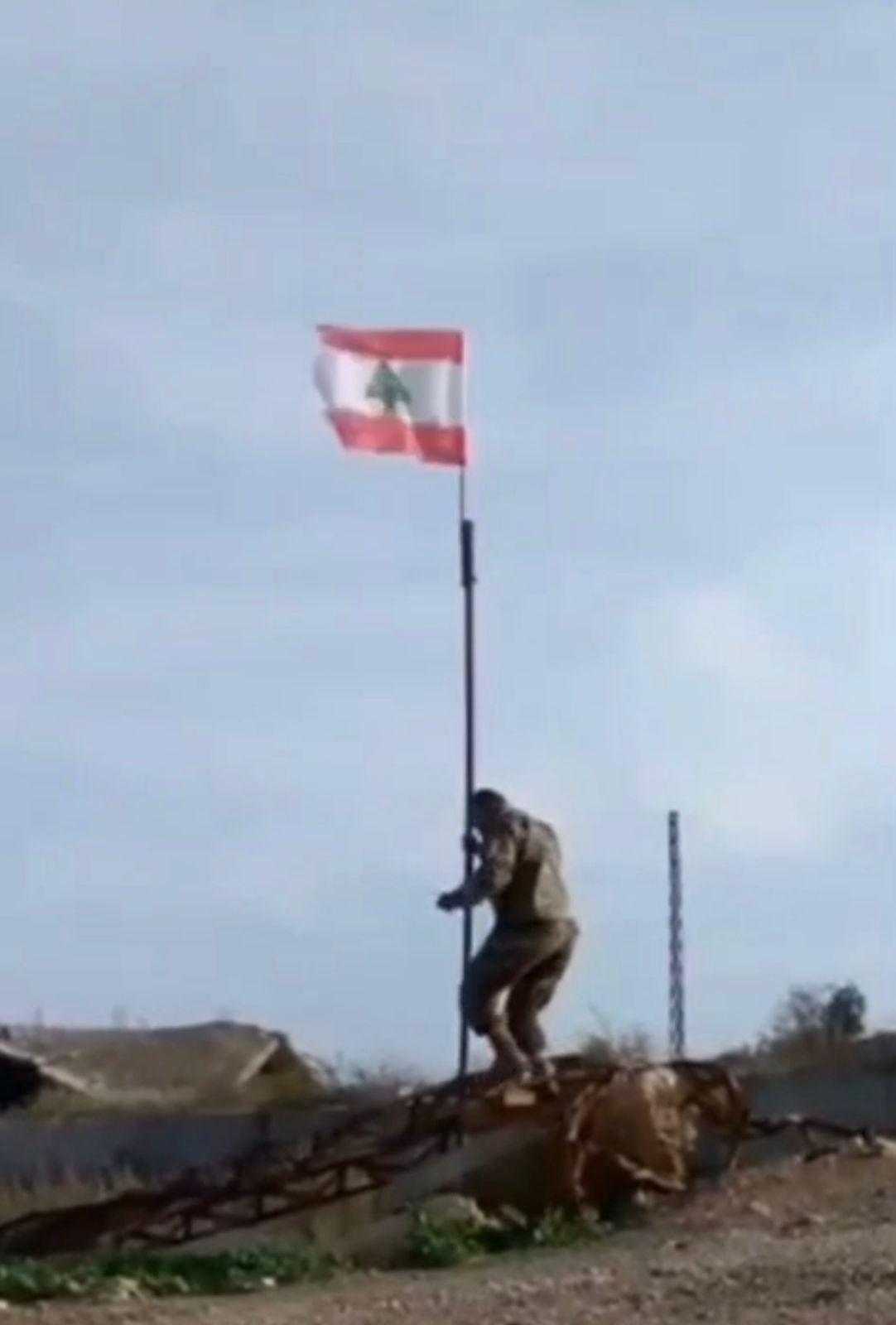 جندي لبناني يرفع العلم عند الحدود الدولية في بلدة الضهيرة الحدودية لمناسبة عيدي العلم والاستقلال
