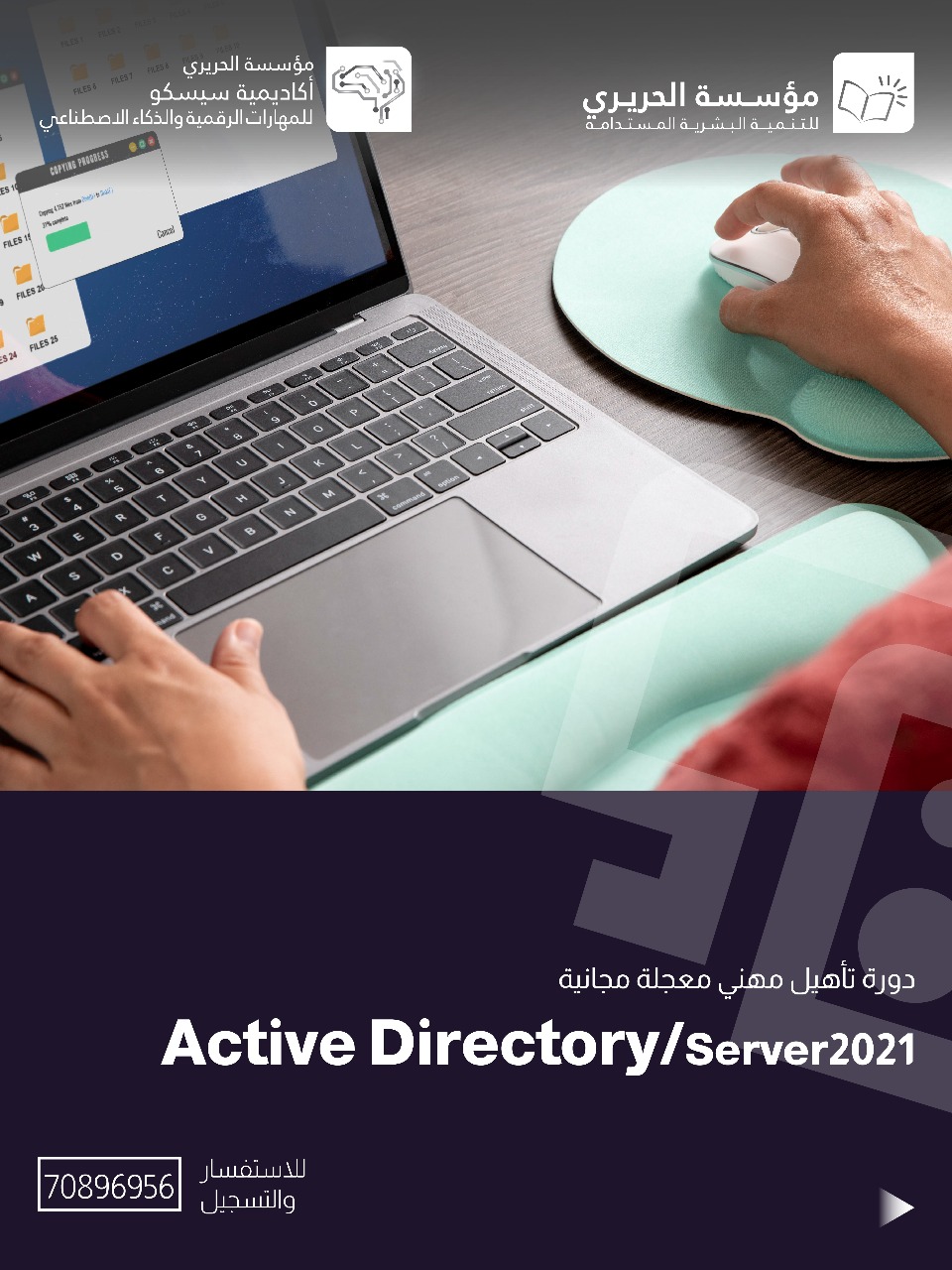 * "Active Directory": يتعرّف المتدرّب على مفهوم الدليل النشط Active Directory، وطريقة إنشاء المستخدمين والمجموعات، وتنظيم الوحدات التنظيمية، وتطبيق سياسات المجموعات لإدارة أجهزة وشبكات المؤسسة.