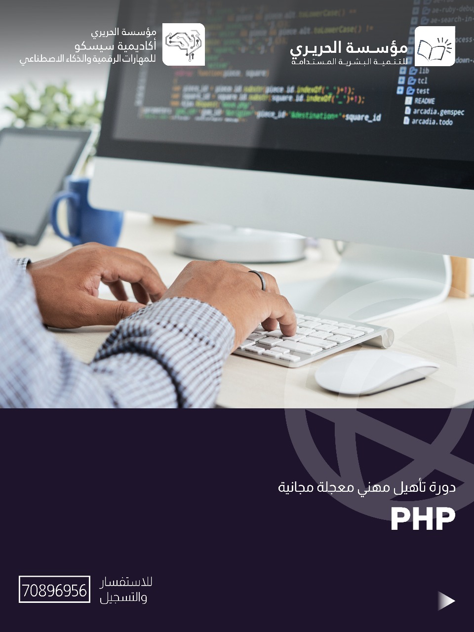 * "HTML / CSS / PHP": يتعلّم المتدرّب إنشاء صفحات ويب باستخدام HTML، وتنسيقها باستخدام CSS، ومبادئ البرمجة باستخدام PHP لبناء صفحات تفاعلية ومعالجة البيانات.