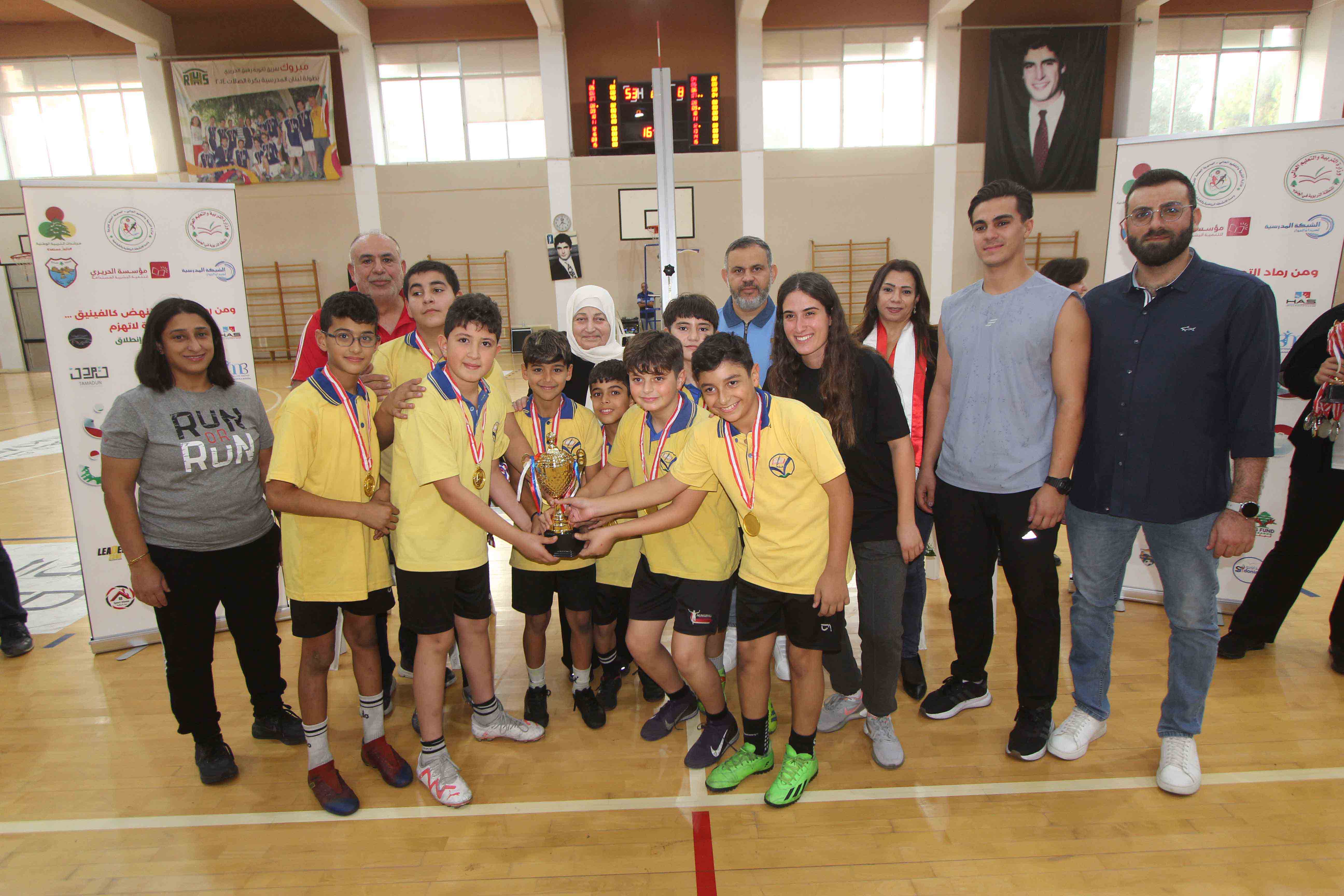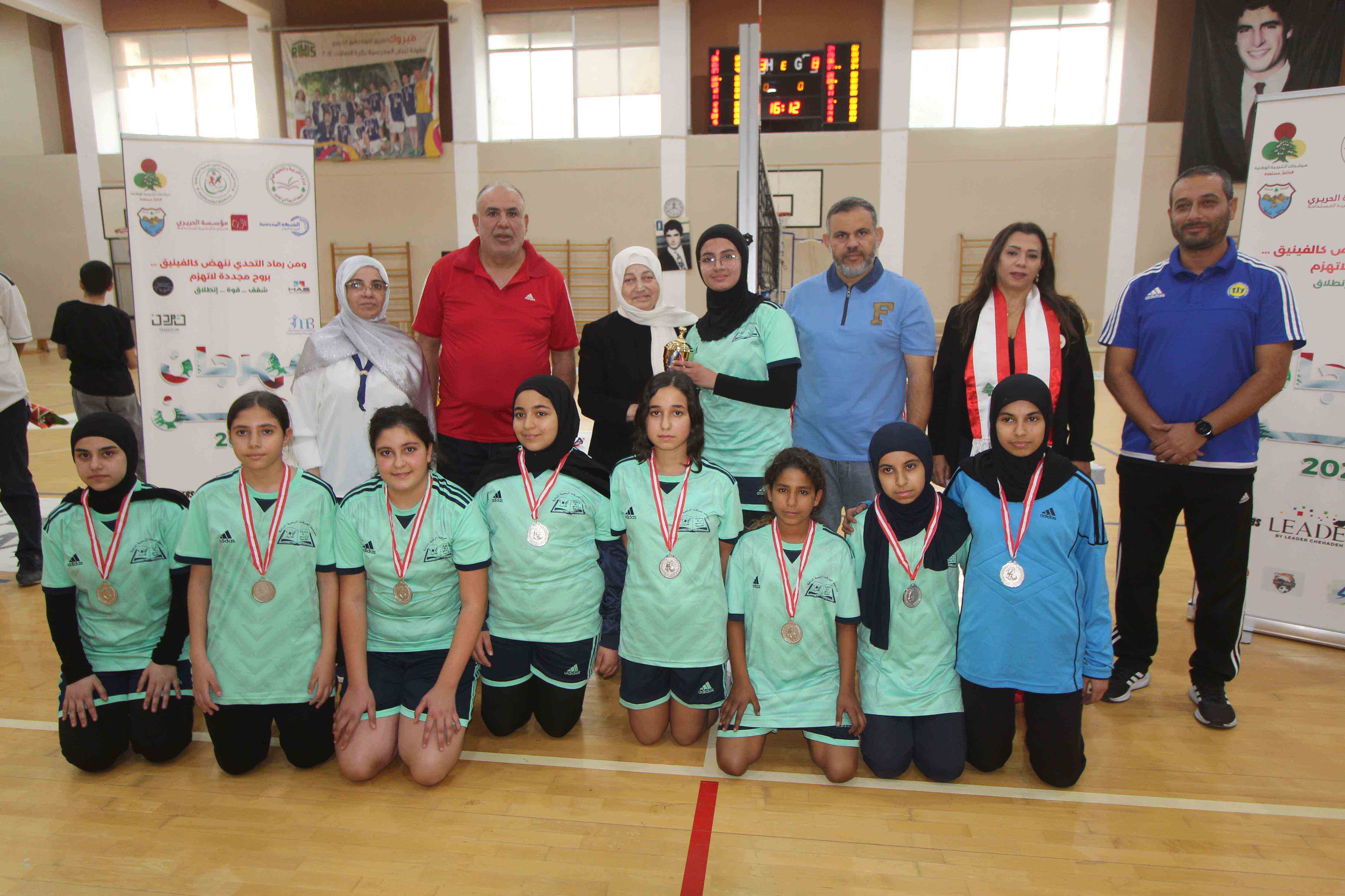 وأقيم حفل تتويج الفائزين من مدارس شبكة صيدا والجوار في قاعة الحسام الرياضية في ثانوية رفيق الحريري بحضور: رئيسة مؤسسة الحريري السيدة بهية الحريري ، وممثل بلدية صيدا رئيس لجنة الشباب والرياضة في المجلس البلدي الأستاذ خالد عفارة، وممثل المنطقة التربوية الأستاذ ديب فتوني ، ومنسق عام الشبكة المدرسية الدكتور أسامة الأرناؤوط ، منسقة وحدة الأنشطة الرياضية والكشفية في الجنوب والقائدة العامة لمرشدات التربية الوطنية السيدة خديجة شعلان ، ومدراء المدارس المشاركة وأساتذة الرياضة فيها، وممثلي الجهات الراعية للمهرجان : شركة leader، جمعية 3MB، شركة M.A.s، CG Fund lebanon ، وبيت الرياضة وحشد كبير من الطلاب المشاركين وأهاليهم.
