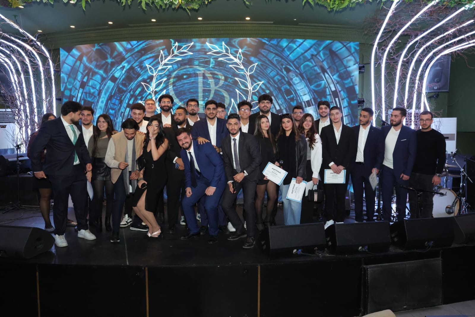 واختتم الحفل بقيام أحمد الحريري وحلاوي وشعيب بتوزيع شهادات التكريم على أعضاء الماكينة الانتخابية لكل جامعة.