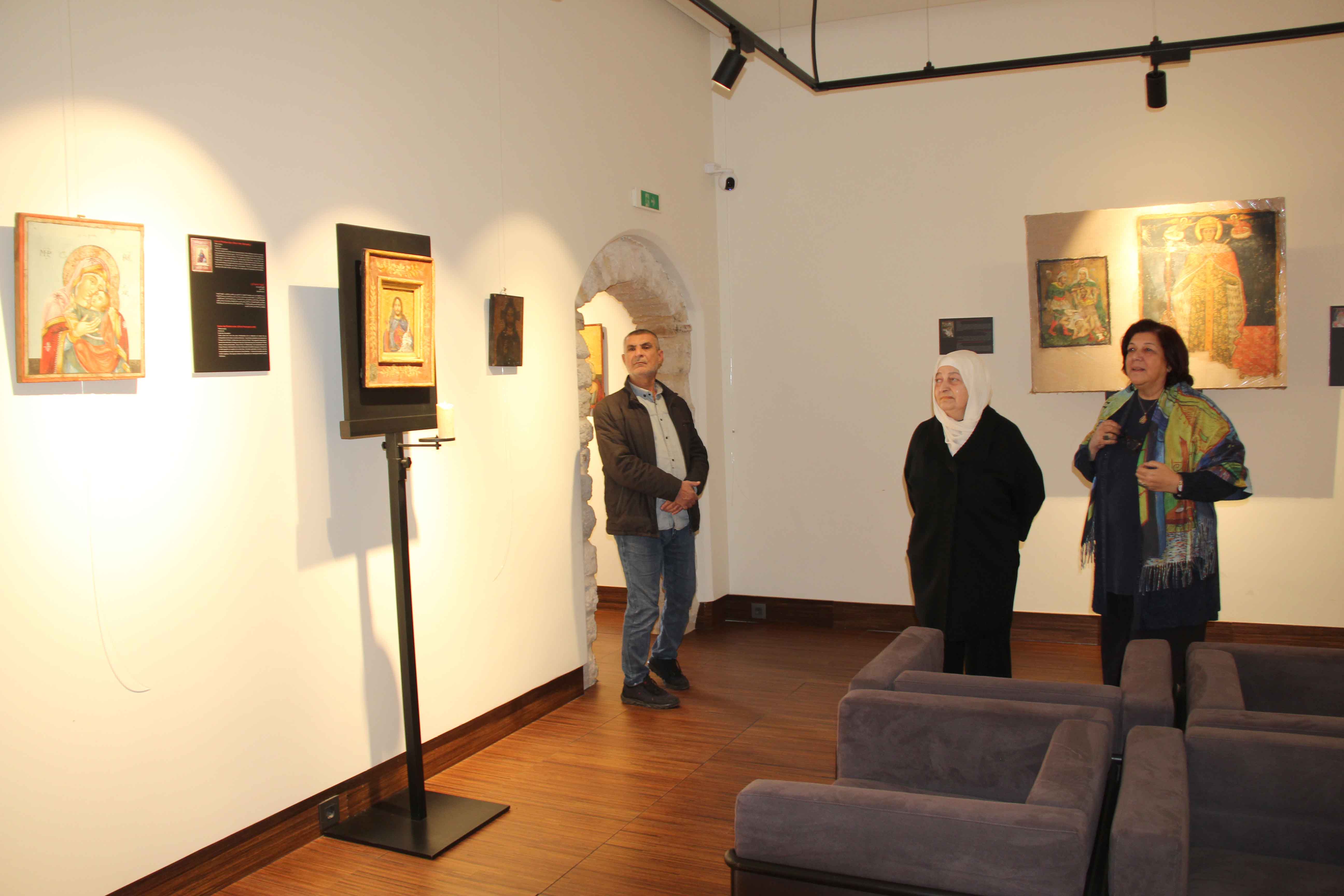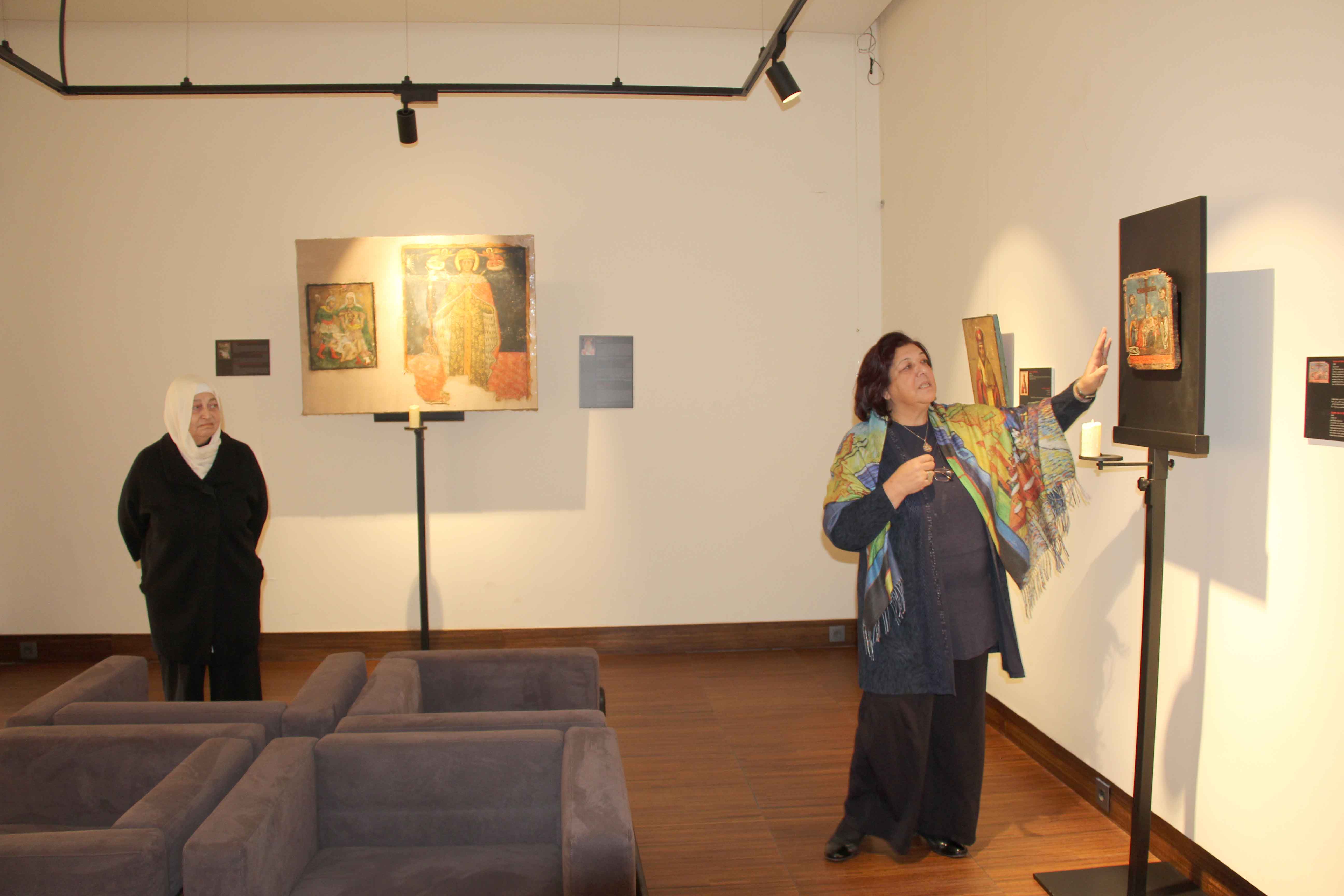 وكان في استقبال السيدة الحريري مديرة المتحف السيدة ألفت البابا ، حيث جالت برفقتها في المعرض الذي يضم ستين أيقونة بيزنطية وملكية، قامت بترميمها الفنانة التشكيلية لينا كيليكيان، بدعم من مؤسسة الحريري وضمن مشروع ترميم كاتدرائية القديس نيقولاوس الأثرية والذي نفذته المؤسسة بهبة من الرئيس سعد الحريري، حيث تم ايداع هذه الأيقونات مؤقتاً في متحف قصر دبانة ريثما يتم نقلها الى الكاتدرائية .