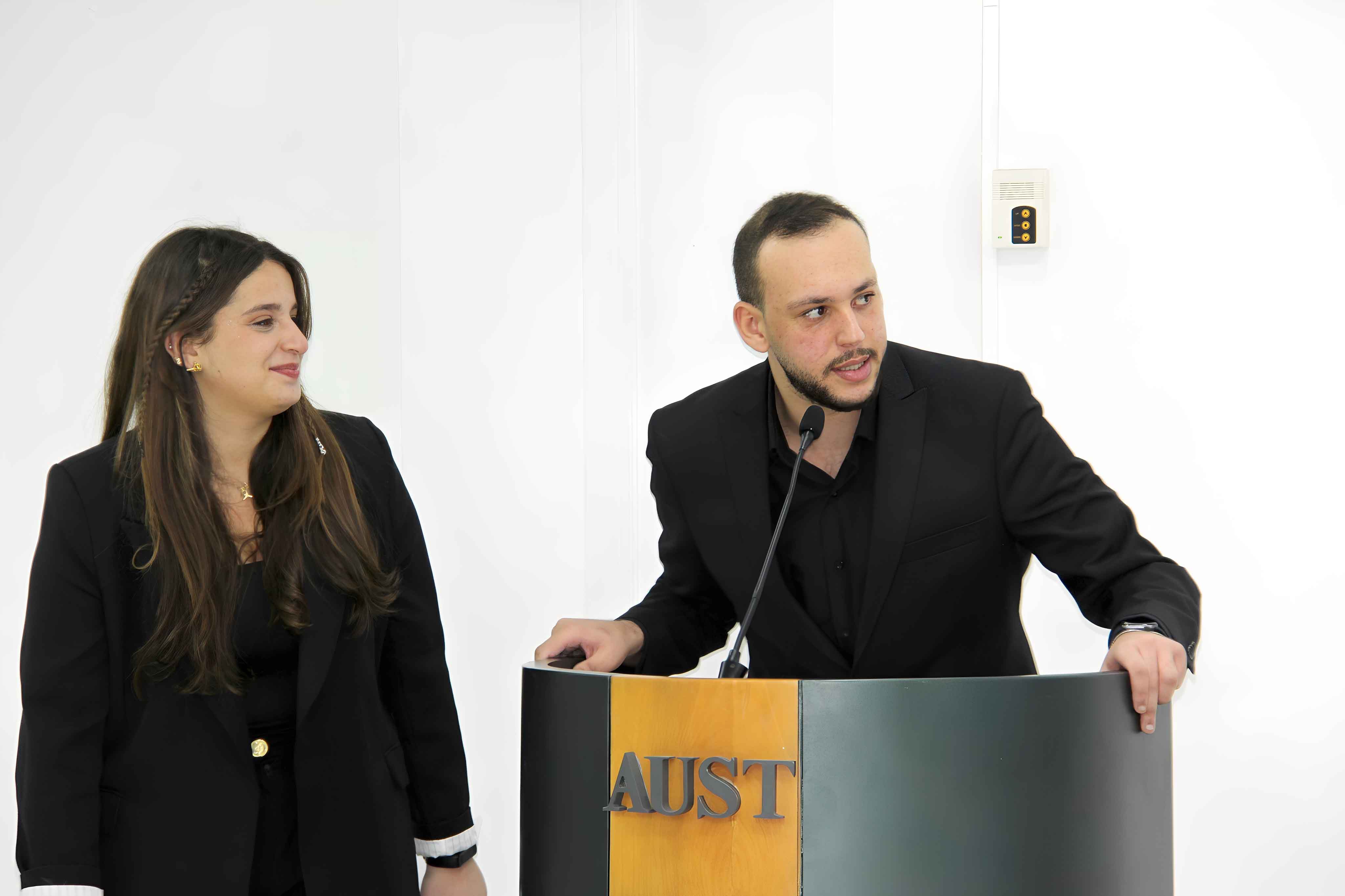وأكد الدكتور فرحة أن جامعة AUST، كانت وما زالت، بيئة حاضنة للإبداع، ومُختَبرًا للأفكار، ومنَصةً تُشجّع الطلابَ على المبادرة والابتكار، وإنها كانت دائمًا سندًا لطلابِها، تؤمِنُ بقدراتهم، وترافِقُ تَطورِهُم، وتضعُ بين أيديهم كل الأدواتِ التي يحتاجونها كي يُصبحوا رواداً ورائدات في مجالاتهم. وقال: ما هذا الحفل سوى دليلٍ واضحٍ على التزامَنا المُستمر بتشجيع الطلاب وتمكينَهم، وعلى فخرَنا العميق بكل طالبٍ أو طالبة يرفعُ اسم الجامعة عاليًا حيثما ذهب.