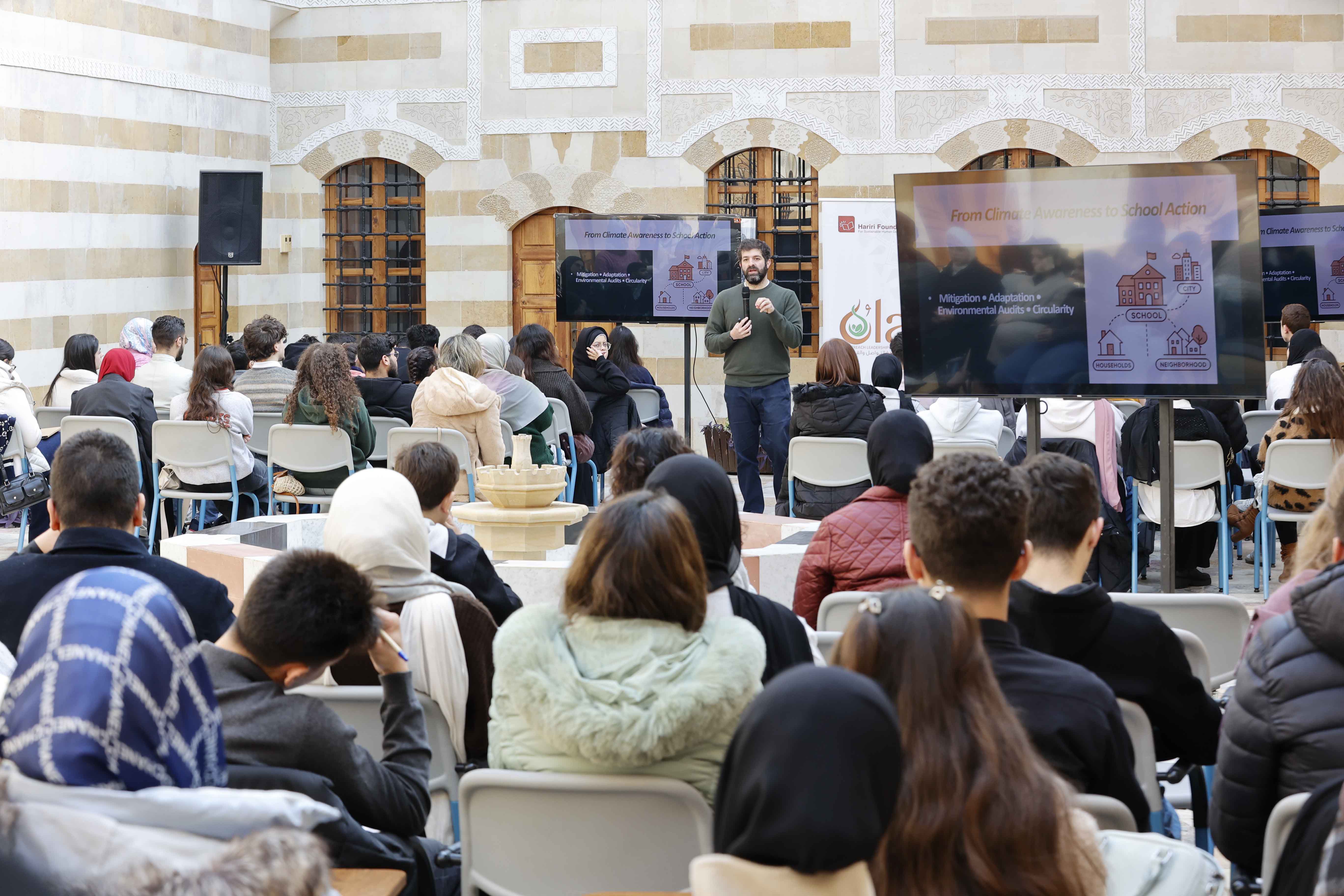 في إطار "برنامج السفراء الخضر" نظّمت مؤسسة الحريري– أكاديمية التواصل والقيادة (OLA)، بالشراكة مع "الشبكة المدرسية لصيدا والجوار"، ورشتي عمل تدريبيتين لطلاب من مدارس الشبكة تحت عنوان "العمل من أجل المناخ"، تخللهما إطلاق خطط العمل البيئية التي ستنفّذها أندية "السفراء الخضر " في المدارس والمساحات المحيطة بها خلال العام الدراسي الحالي ( 2025-2026)، وبهدف ترجمة المعرفة التي اكتسبوها في هذا المجال، إلى مبادرات ميدانية تعزّز السلوك البيئي المسؤول، وتكرّس دور الشباب كفاعلين أساسيين في العمل المناخي والمجتمعي.