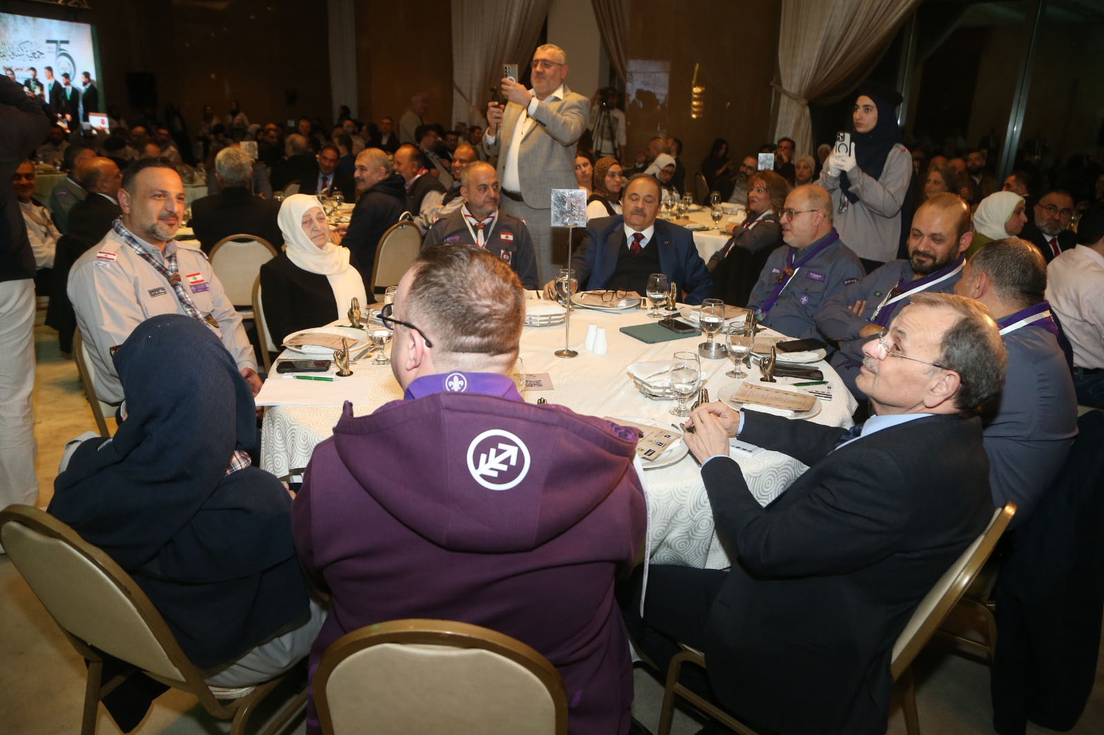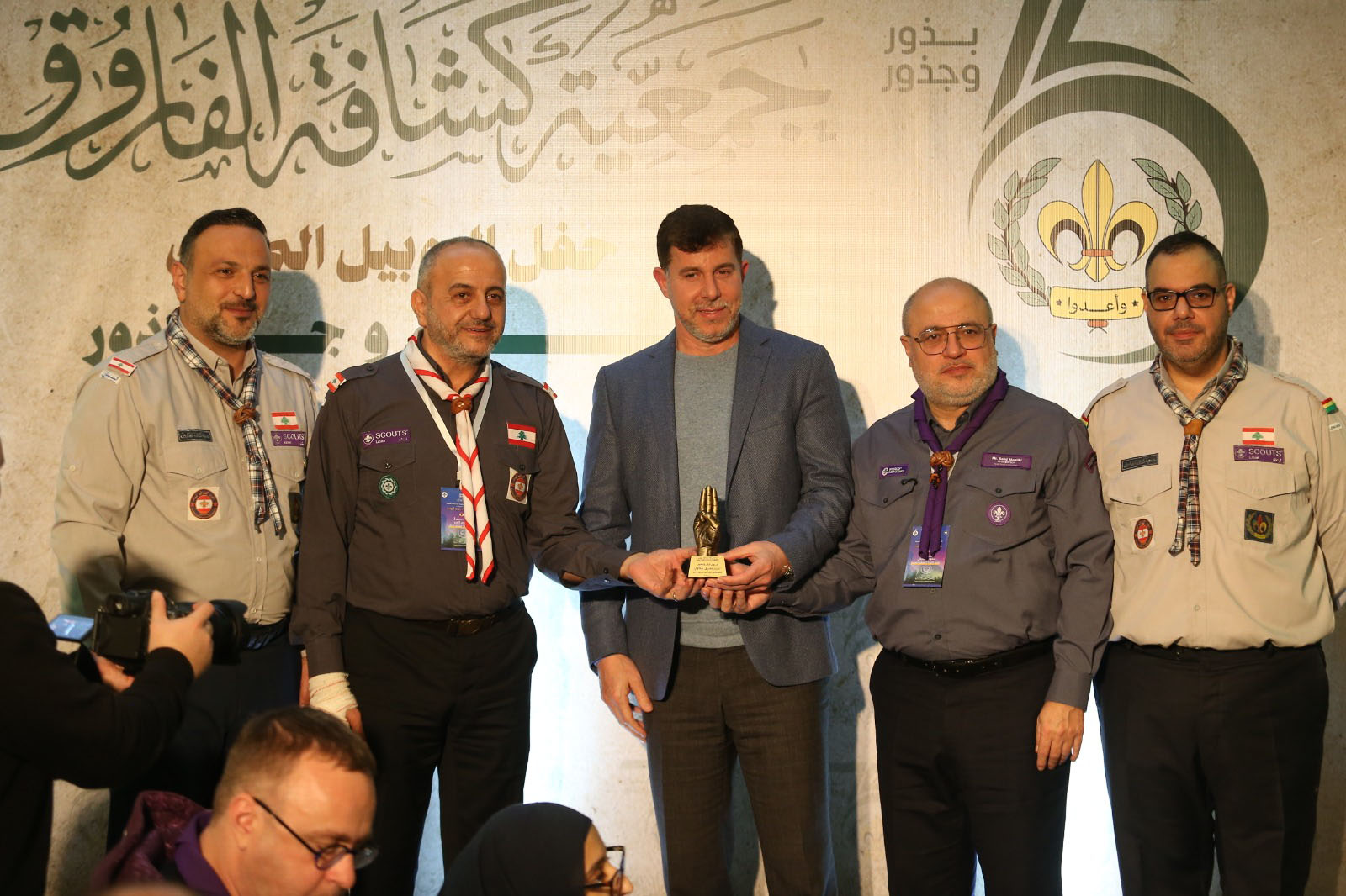 الحفل الذي تحول إلى عرس كشفي ووطني تميز بمشاركة الوفد الكشفي العربي والعالمي الموجود في لبنان بمناسبة انعقاد اجتماعات اللجنة الكشفية العربية في بيروت ، وحضره : النائب الدكتور عبد الرحمن البزري، وممثلا النائبين الدكتور أسامة سعد والدكتور طه ناجي، رئيسة مؤسسة الحريري وقائد عام كشافة لبنان المستقبل السيدة بهية الحريري، رئيس بلدية صيدا المهندس مصطفى حجازي، رئيس بلدية حارة صيدا السيد مصطفى الزين ونائبه السيد أحمد صالح، رئيس بلدية كترمايا الشيخ أحمد علاء الدين، رئيس و أعضاء المجلس الإداري للمركز الثقافي الإسلامي الخيري في صيدا وعدد من رؤساء ومديري المؤسسات التربوية والجمعيات الاجتماعية والخيرية و هيئات المجتمع المدني ورجال الأعمال.