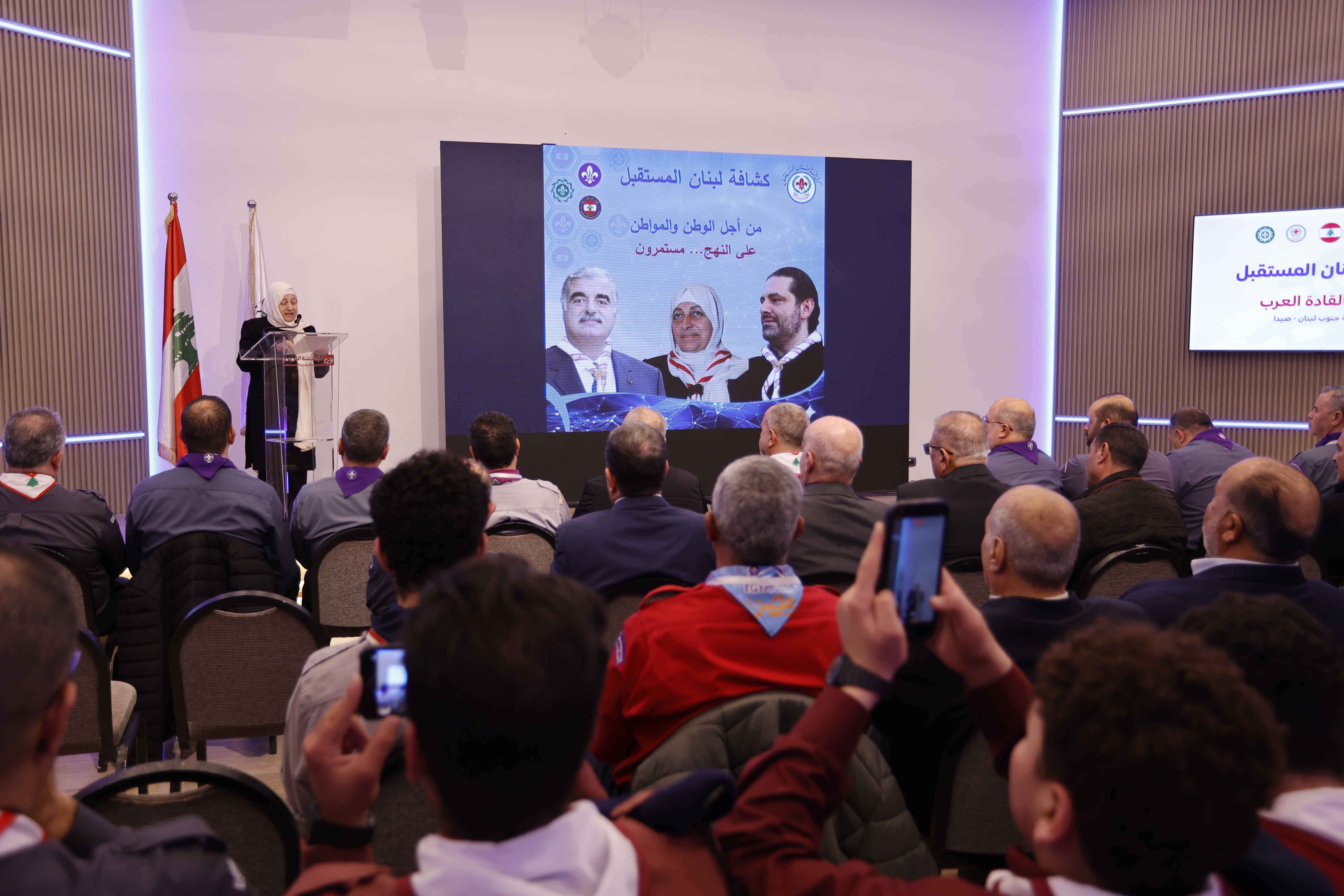 وأضافت: نلتقي اليوم لنتشرّف بلقائكم في مدينة صيدا، ونؤكّد على مشاركة كشافة لبنان المستقبل في كلّ ما يلمّ الشّمل ويعزّز التّعاون والشّراكة الوطنية والعربية والعالمية..هذه الشّراكة التي يجسّدها حضوركم معنا اليوم، ونتشارك فيها بتكريم القائد سعيد معاليقي،لإنتخابه رئيساً للجنة الكشفية العربية، وبحضور مقدّر ومشكور من أصحاب السعادة قادة اللجنة الكشفية العربية والعالمية والمنظمة الكشفية العربية والوفد الكشفي العربي المرافق وإتحاد كشاف لبنان ورؤساء الجمعيات الكشفية..