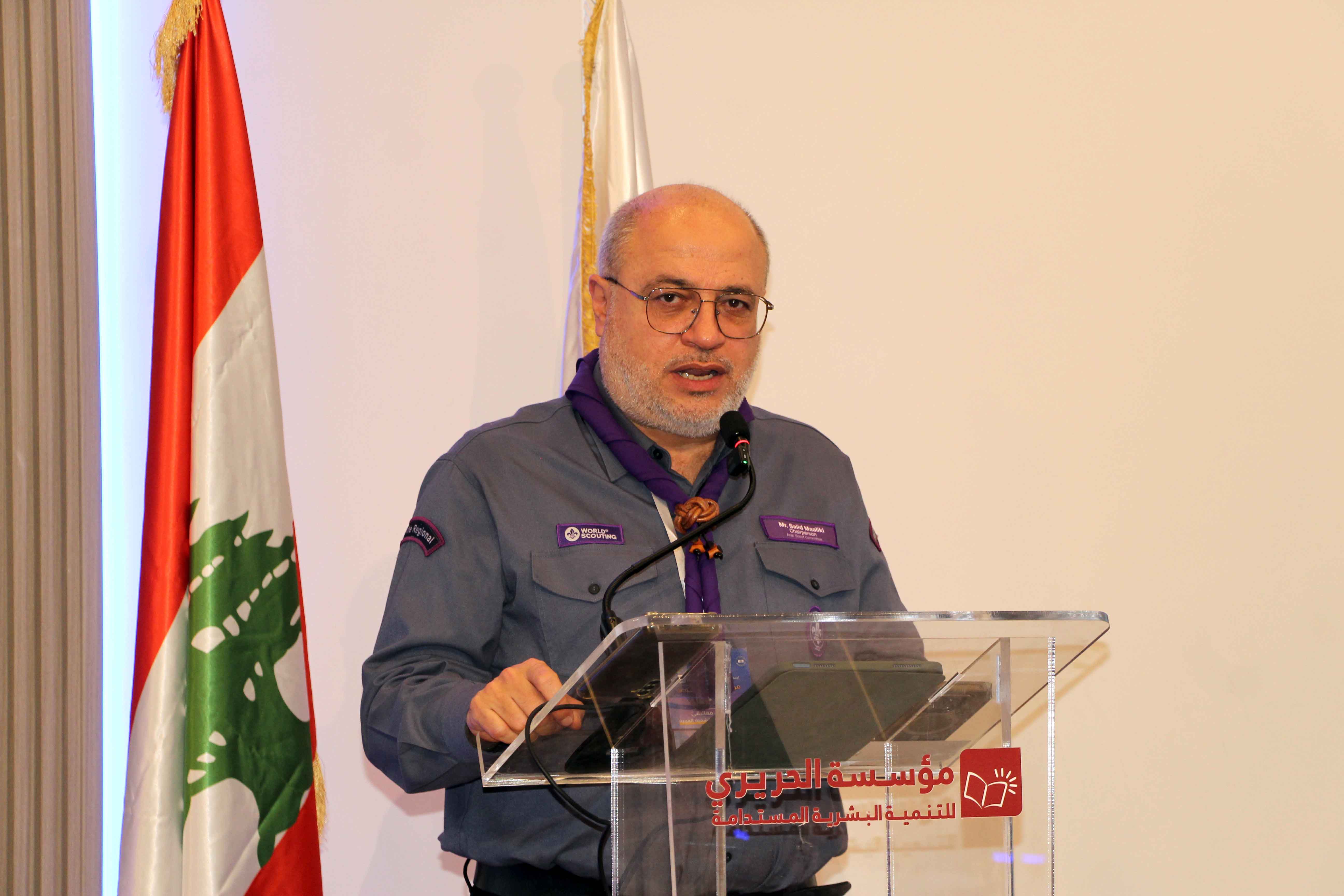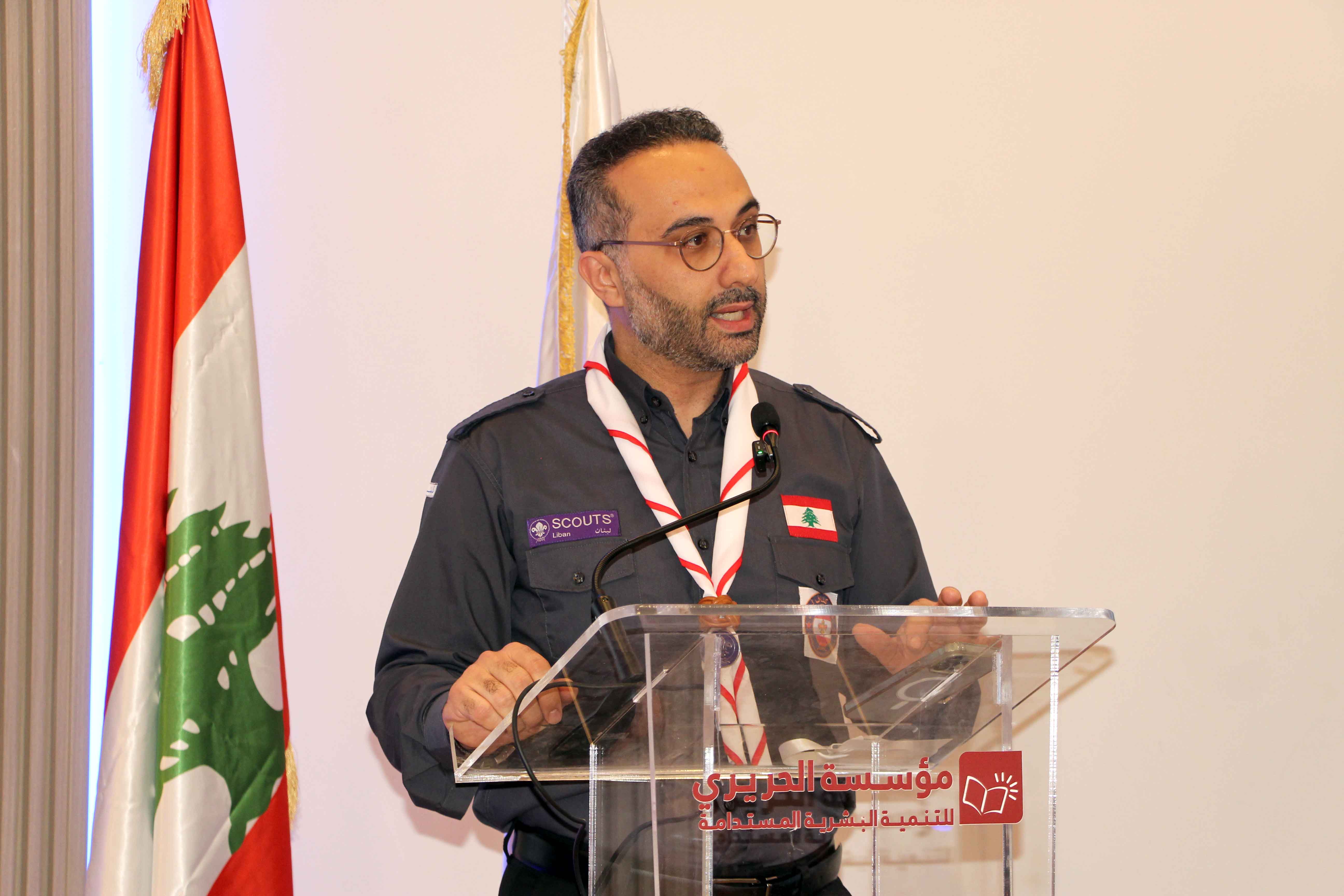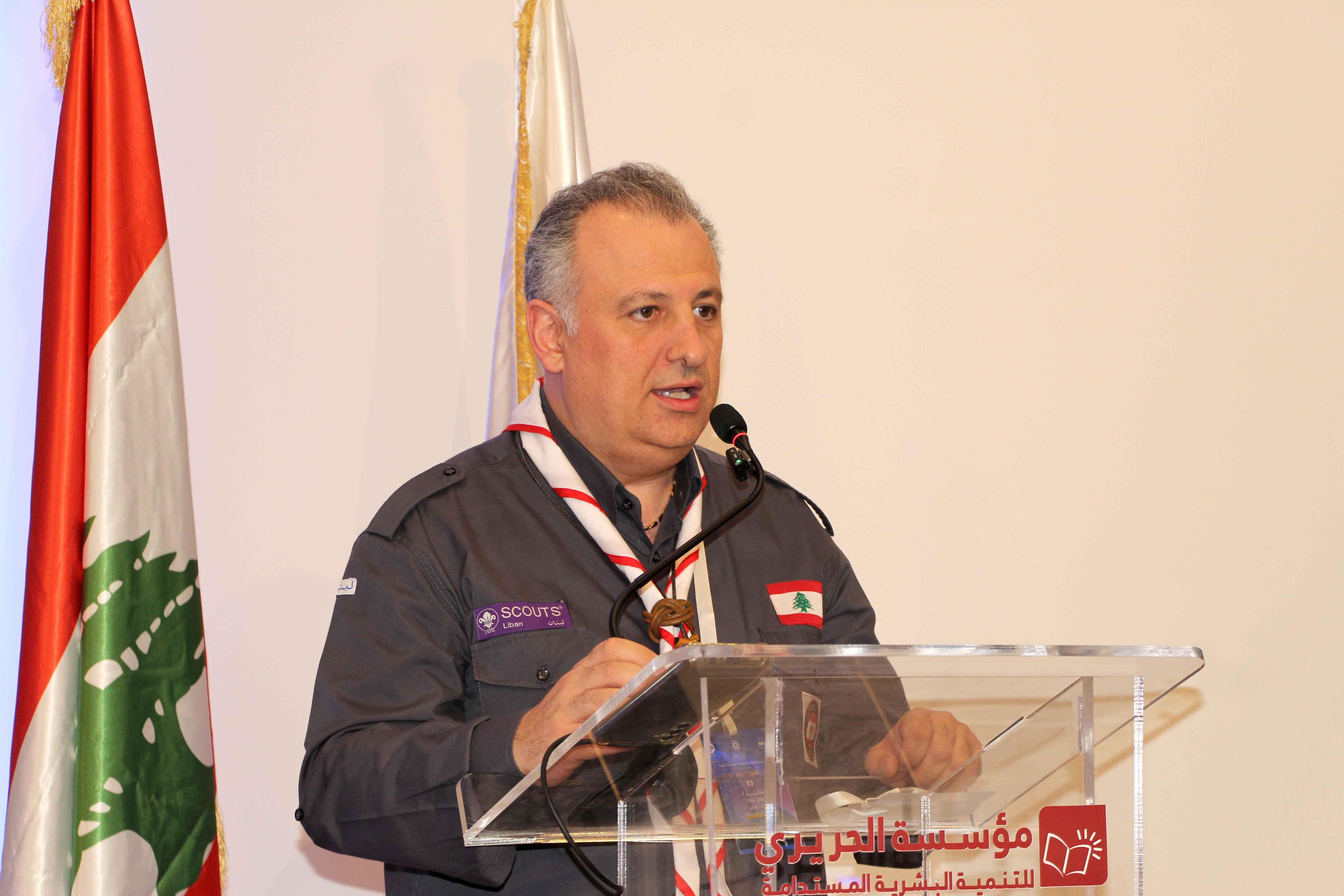 وأضاف: بإسم اتحاد كشاف لبنان، أوجه لكم جميعاً وللسيدة بهية الحريري أعمق آيات الشكر والتقدير والإمتنان على هذه الدعوة الكريمة . والشكر أيضاً وتكراراً الى جميع الأخوة الأحباء القادة الذين تكبدوا عناء السفر الى لبنان للمشاركة في هذه الاجتماعات ، التي نرجوها ان تكون مثمرة لقادتنا ولشبابنا ولشاباتنا العرب . ونحن لا نشك اطلاقا بأن اجتماعاتكم سوف تكون مثمرة، لأننا نعرف هؤلاء القادة معرفة طيبة ونعرف قدراتهم وكفاءاتهم ، ولذلك نضع كل ما نرجوه لشبابنا العربي بين ايديهم .