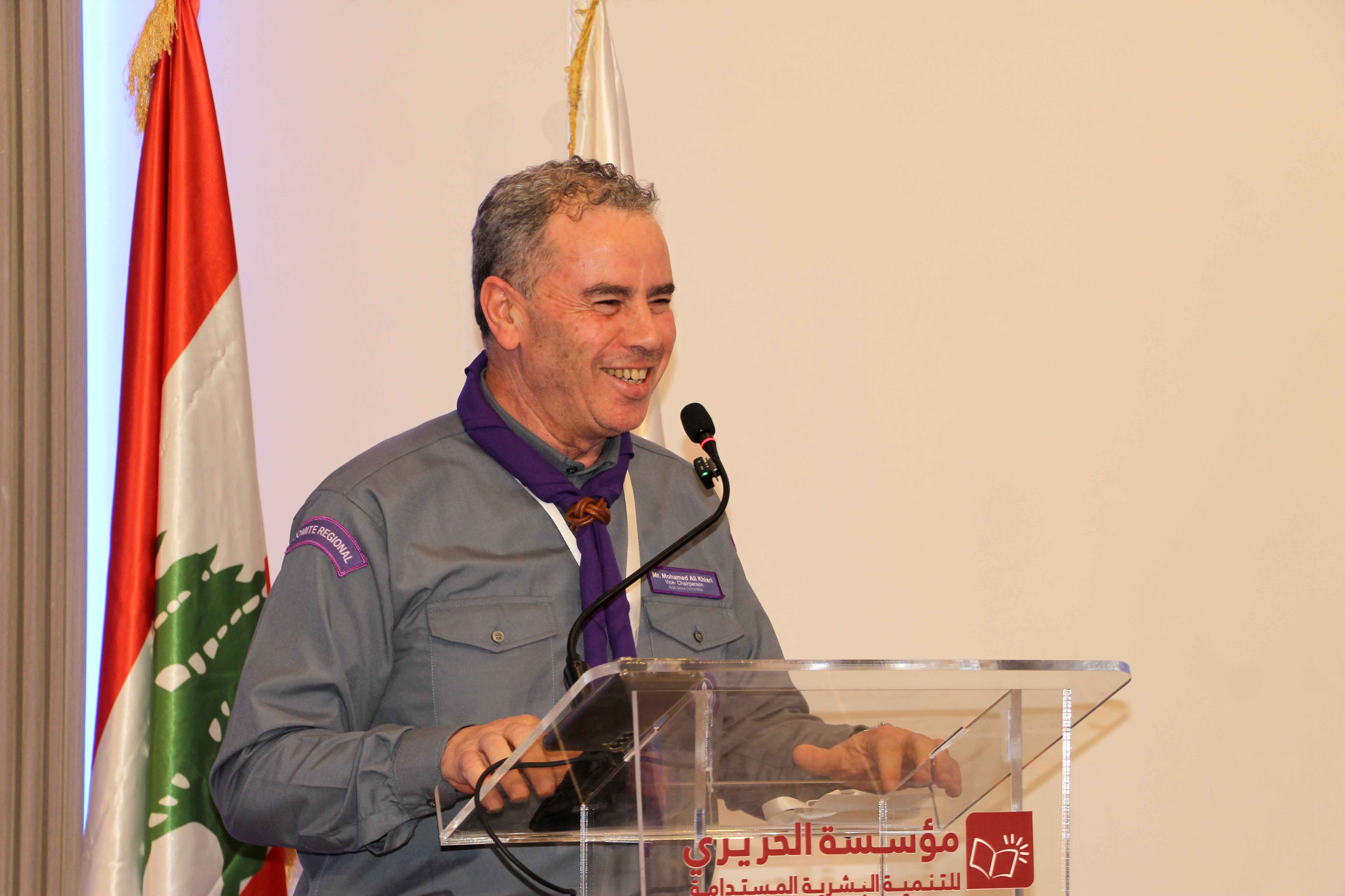 كلمة اللجنة الكشفية العربية ألقاها نائب الرئيس القائد محمد خيالي ، فقال: نحن متواجدون في صيدا ككشافين عرب وقادة الحركة الكشفية العربية، وفخورون بتواجدنا في هذا البيت الكريم في بيت آل الحريري، وفي أحضان جمعية كشافة لبنان المستقبل. هذه الجمعية انا شخصياً اعتبرها حاضنة للحركة الكشفية اللبنانية ومن خلالها الحركة الكشفية العربية ، وهذه المرة الثانية التي نزور كوفود عربية لبنان، وتكون دار آل الحريري مفتوحة للقيادات الكشفية وهذا احتضان نفتخر ونعتز به .