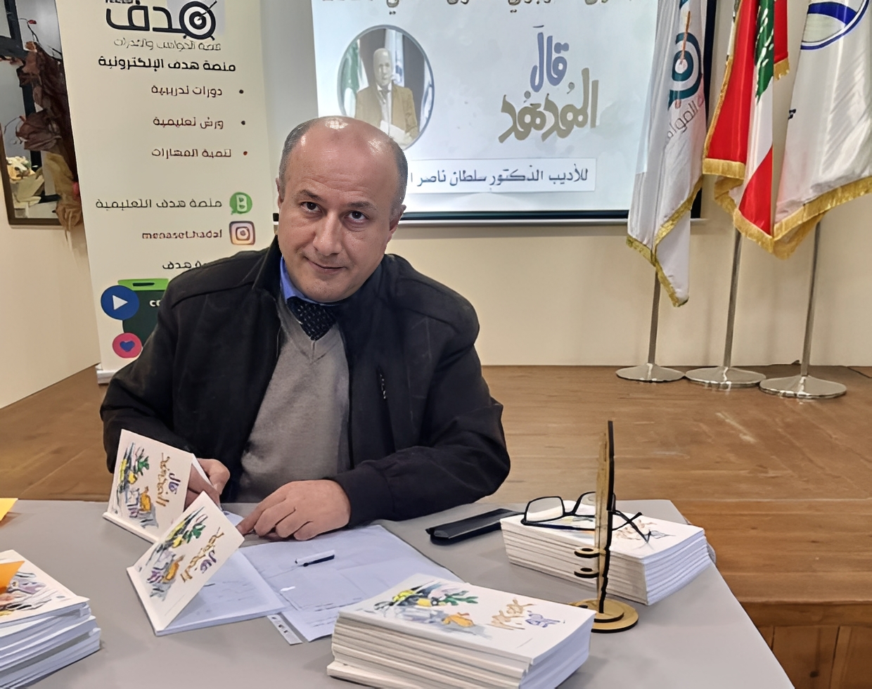 وتحدّث المؤلّف الدكتور سلطان ناصر الدّين، فاعتبر أن "فعل الكتابة فعل حياة "، وأننا " حين نكتب لا نخطّ كلمات فحسب، بل نزرع بذورًا في تربة الزّمن. نكتب فنقاوم النّسيان، ونبني جسورًا بين عقل وعقل، وبين جيل وجيل". وقال:" كلّ نشاط فكريّ تربويّ هو ضوء، وربّما ضوء صغير، لكنّه قد يهزم عتمة كاملة. في الملتقى التّربويّ نجتمع لنوقظ الأسئلة ، ونحاور الفكرة ، ونصادق الكتاب".