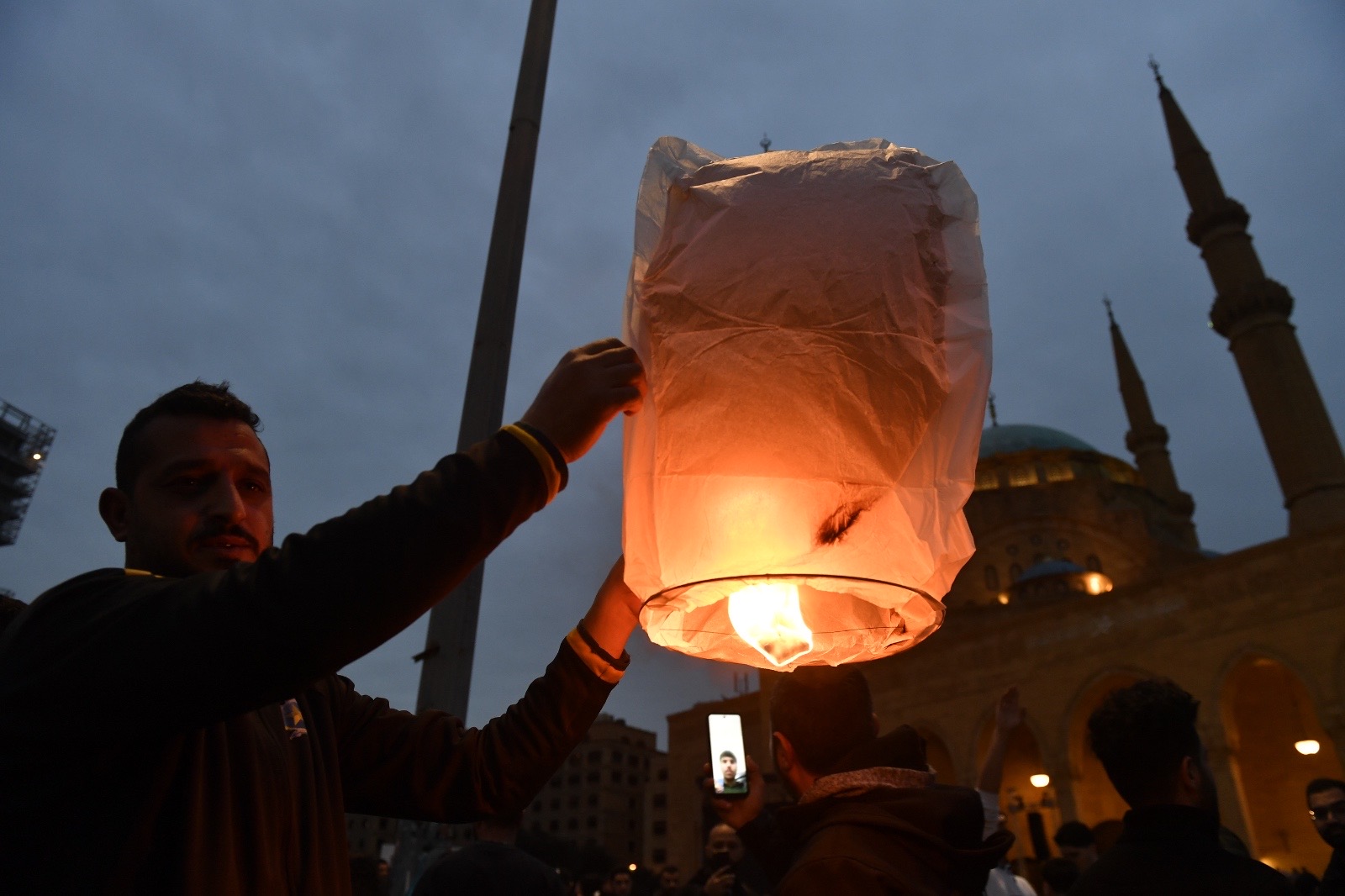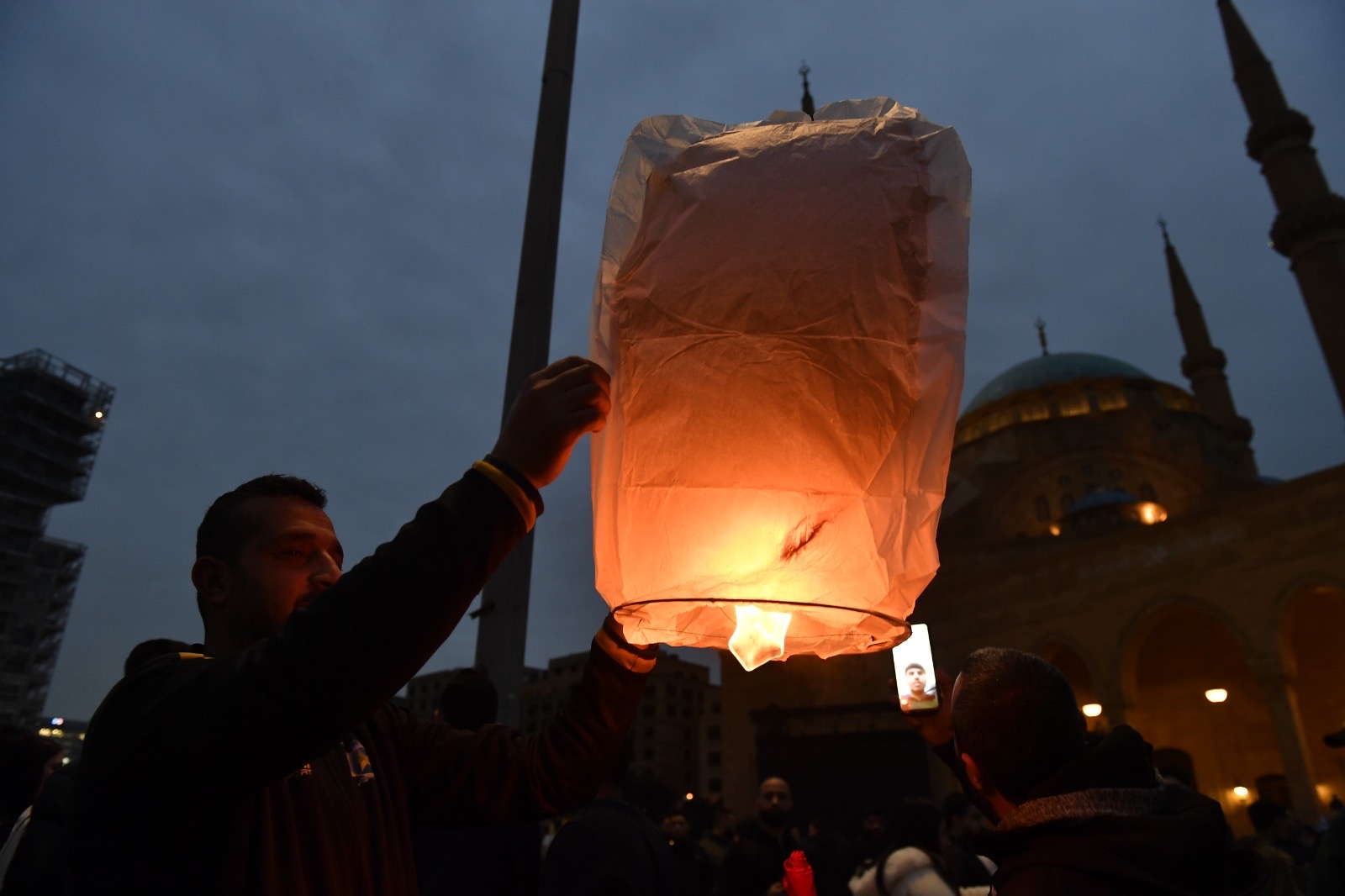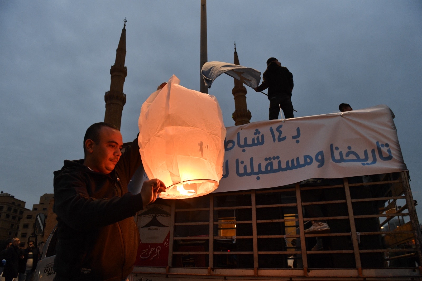 مناصرو المستقبل يطلقون مناطيد في ساحة الشهـداء في ذكرى اغتيال الرئيس رفيق الحريري