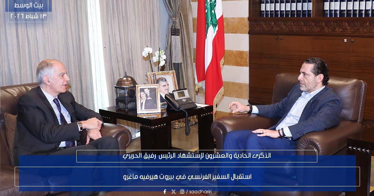 ثم التقى السفير الفرنسي هيرفيه ماغرو وبحث معه التطورات والعلاقات بين البلدين.