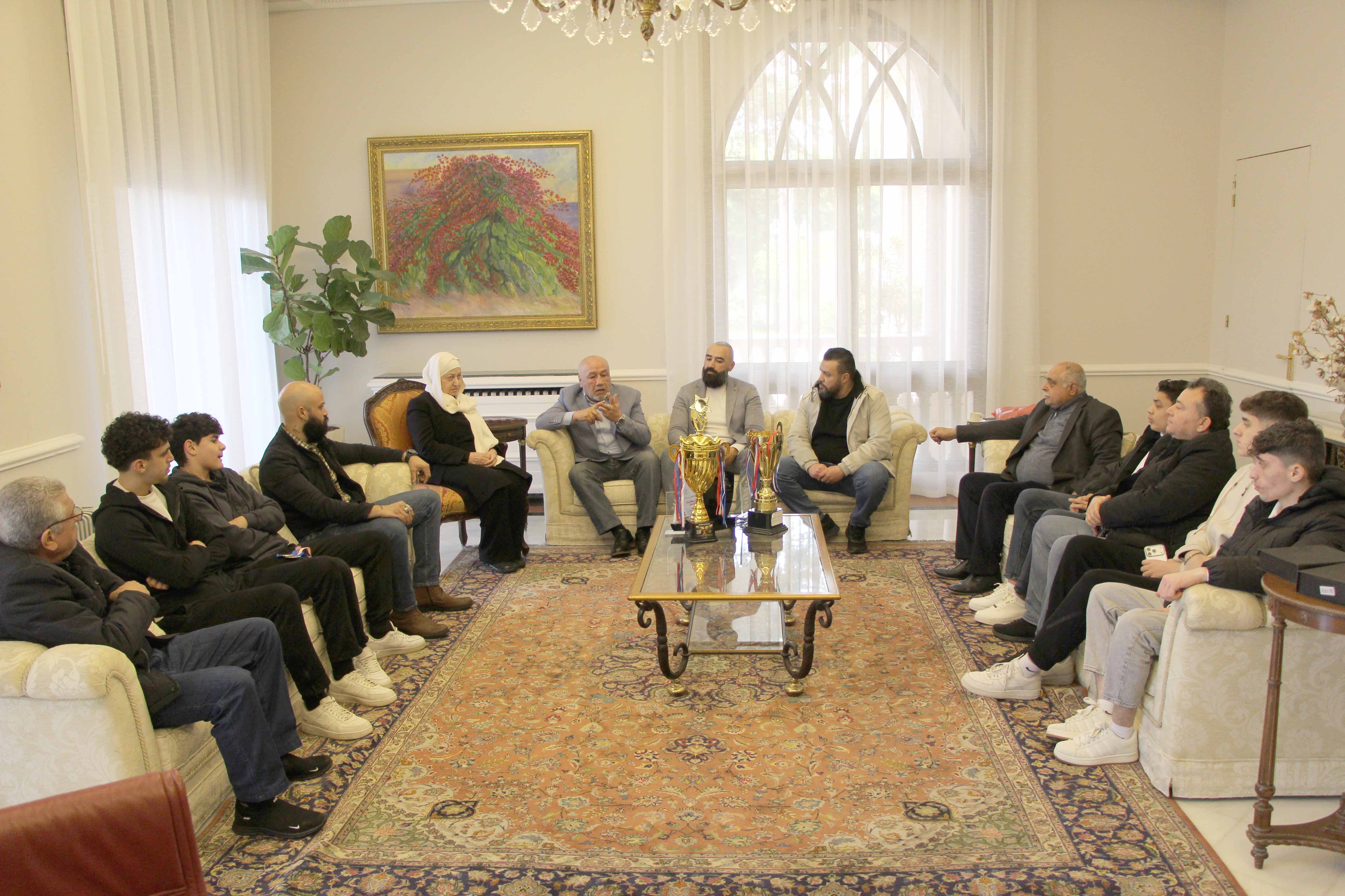 وضم الوفد "نائب الرئيس يوسف اليمن وأمين الصندوق مصطفى حبلي ومدير العلاقات العامة المدرب محمد المصري، والمدرب الدولي وسام هلال والمدرب لؤي الأسعد ومستشار النادي محيي الدين جمال " يرافقهم أبطال" الفتيان" الذين حققوا نتائج محلية ودولية " رمزي هلال، عبد ضاهر، اليو اغجايان، محمد السقا، محمد إبراهيم، حسن ارناؤوط ، علي شور، كارل صوايا، كارل كنيدر، سيرج اغجايان ، ومدير نادي النجوم صيدا عارف وتار".
