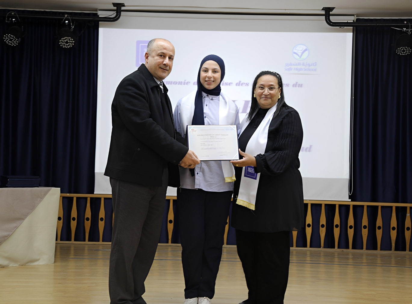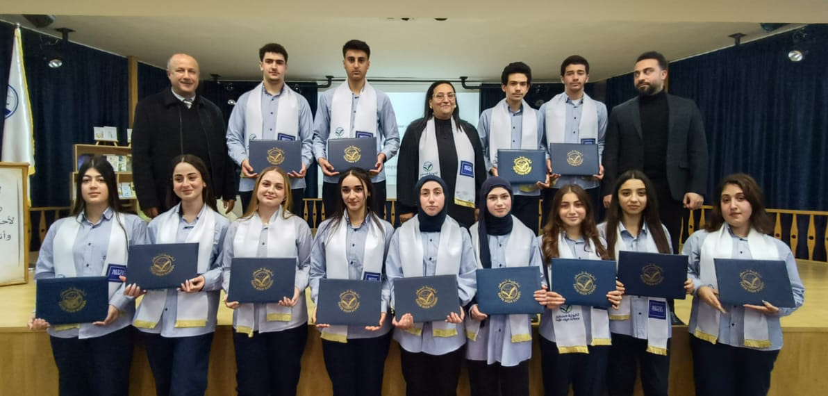 بعد ذلك قامت الصبّاح بمشاركة المدير ناصر الدين ونخلة بتوزيع الشهادات على الطلاب الفائزين في امتحان " DELF" المستويات A2و B1وB2 وعددهم 45 طالبًا وطالبة .
