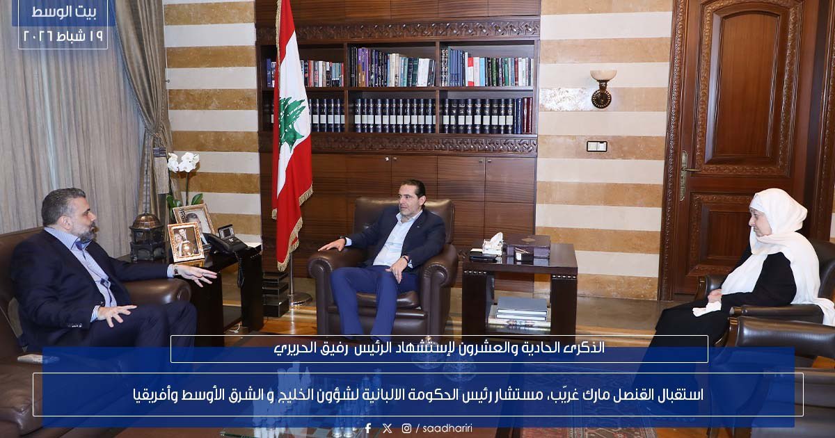 ثم استقبل الرئيس الحريري القنصل مارك غريّب مستشار رئيس الحكومة الالبانية لشؤون الخليج والشرق الأوسط وأفريقا وعرض معه الأوضاع العامة والعلاقات الثنائية.