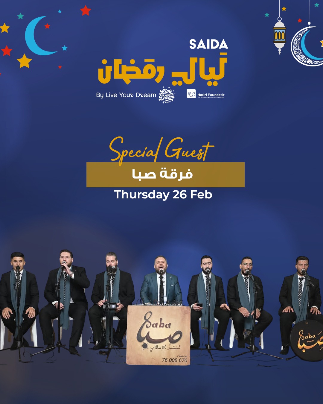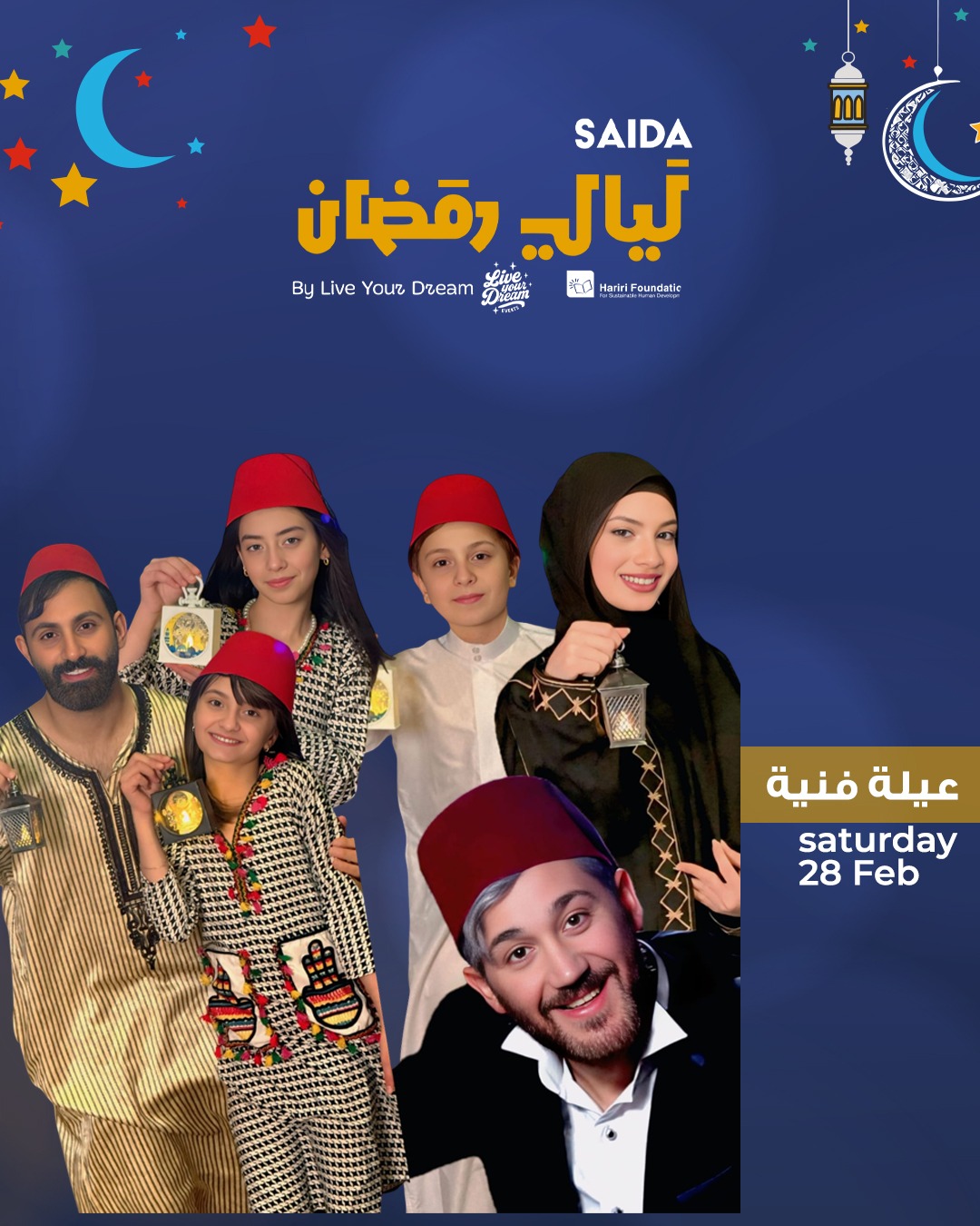 ضمن فعاليات "صيدا مدينة رمضانية 2026 " ، ينطلق في خان الإفرنج عند الثامنة من مساء الخميس 26 شباط 2026، مهرجان " ليالي رمضان صيدا " بنسخته الثانية ، والذي تنظمه" Live Your Dream " بالتعاون مع مؤسسة الحريري للتنمية البشرية المستدامة على مدى أربعة أيام .