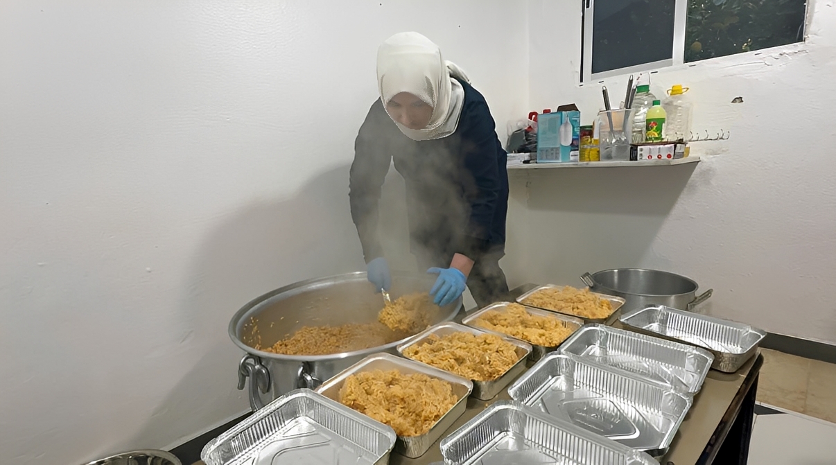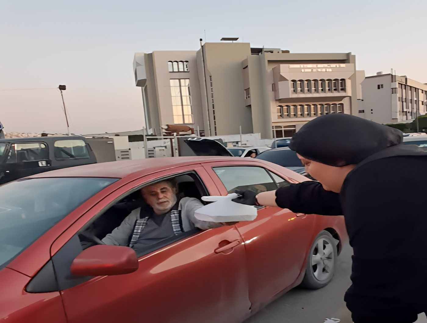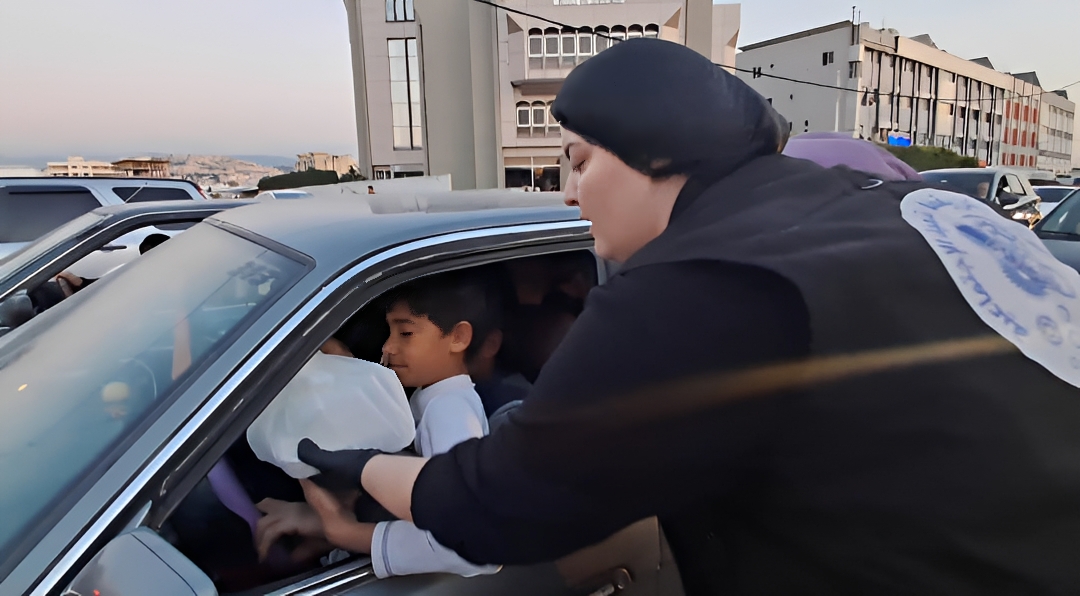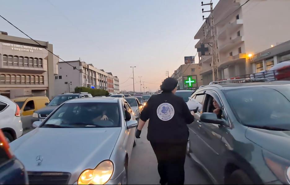 وقام متطوعون من الجمعية بإعداد نحو 300 وجبة افطار وتوزيعها على النازحين في سياراتهم .