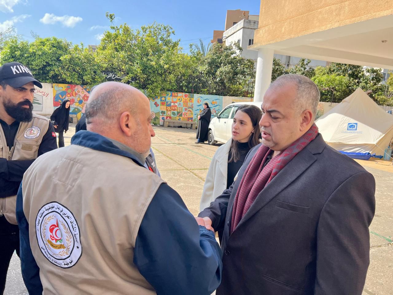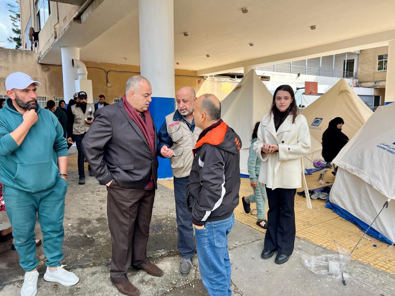 وخلال الجولة، استمع معطي إلى هموم العائلات النازحة واحتياجاتهم، كما اطّلع على عملية تركيب خيم إضافية داخل باحة المركز لاستيعاب الأعداد المتزايدة منهم.