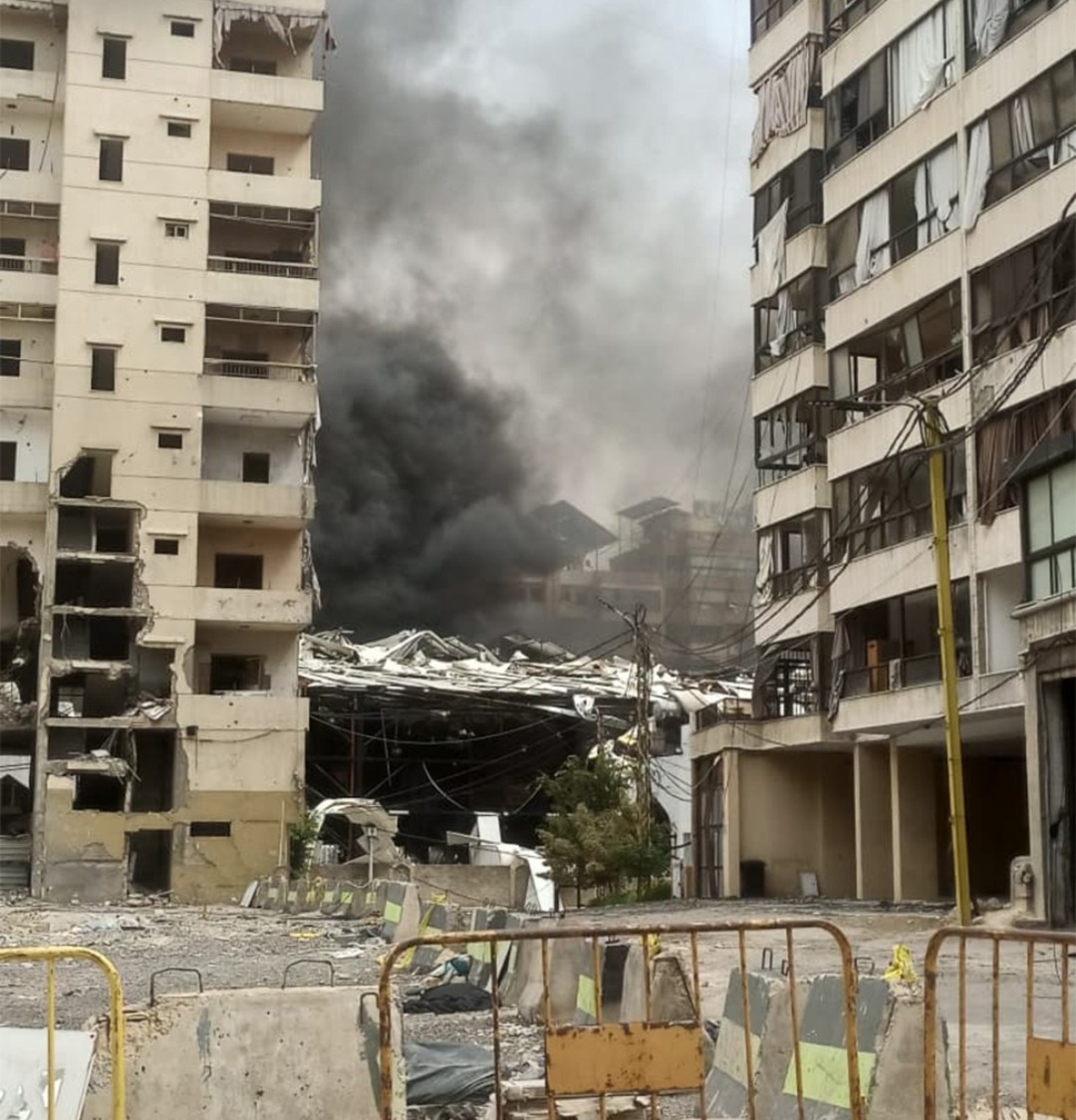 وتظهر الصور حجم الخسائر والدمار الكبير في منطقة الرويس، حيث تضرّر المجمع تضرراً بالغاً إثر الغارة، مع أضرار مادية كبيرة في المنشآت المحيطة.
