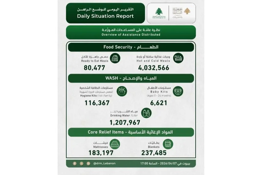 أعلنت "وحدة إدارة مخاطر الكوارث" في السرايا الحكومية في تقريرها اليومي، أن "العدد الإجمالي للنازحين في مراكز الإيواء وصل إلى 138744، في حين بلغ العدد الإجمالي للعائلات النازحة في مراكز الإيواء 36173. كما ارتفع عدد الشهداء إلى 1530 والجرحى غلى 4812".