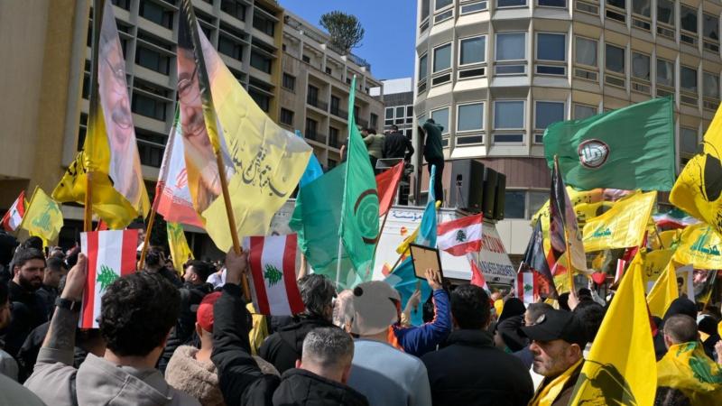 مناصرون من "حزب الله" يتجمّعون أمام السراي الحكومي في بيروت