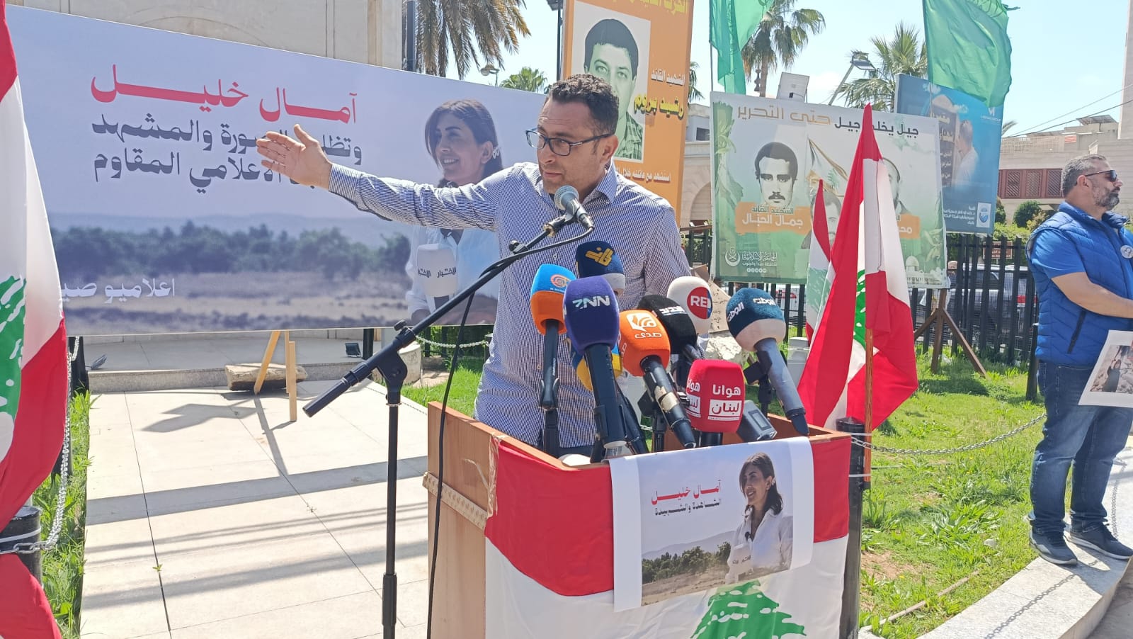 الوقفة التي حملت عنوان""يكتبون أخبار الوطن بالدم… ويتحدّون الاحتلال الإسرائيلي" استُهلّت بكلمة إعلاميي صيدا ألقاها الزميل محمود الزيات فشدّد على أن استشهاد آمال خليل ليس حدثاً عابراً بل جريمة موصوفة بحق الصحافة .