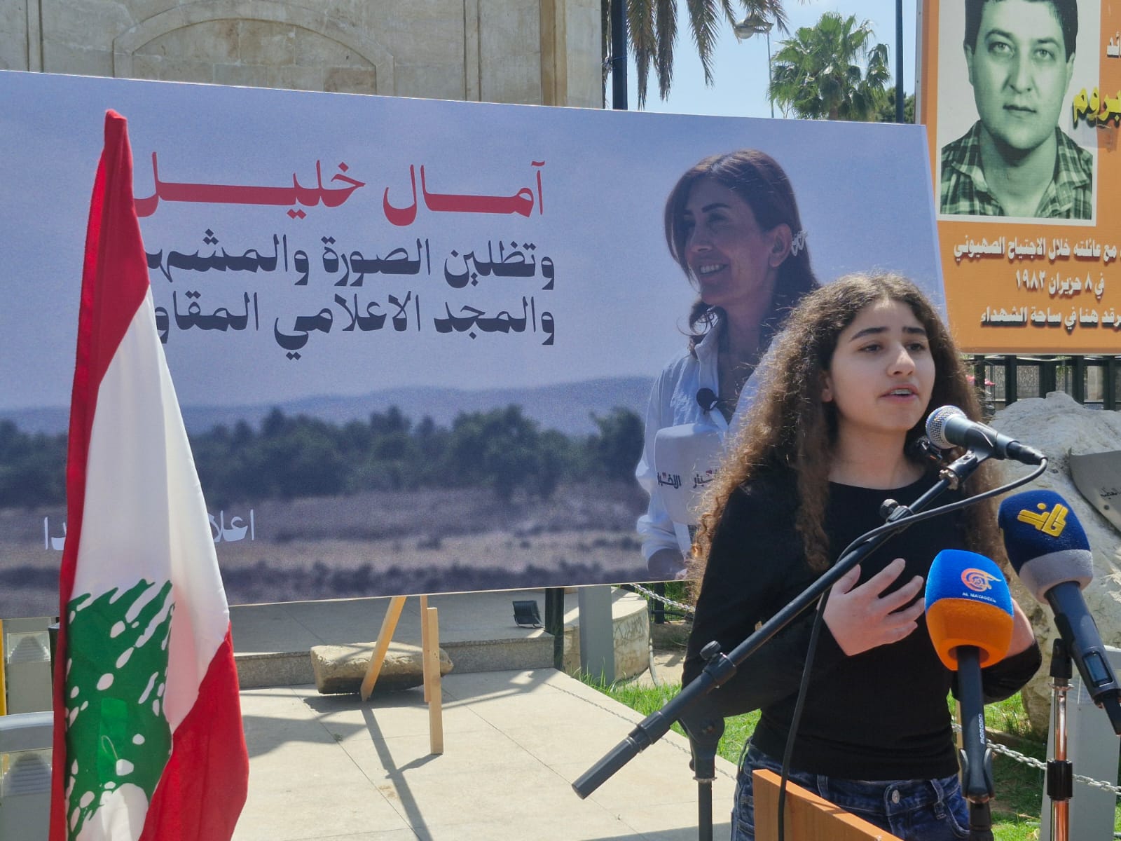 وفي كلمةٍ حملت وجع العائلة وصوت الحق قالت زينب خليل شقيقة الشهيدة ان استهداف الإعلاميين هو استهداف لحرية الكلمة وأن دماء الصحافيين ستبقى شاهدة على جرائم الاحتلال لا سيما حين تتحوّل الكاميرا إلى شاهدٍ خطير على الحقيقة.