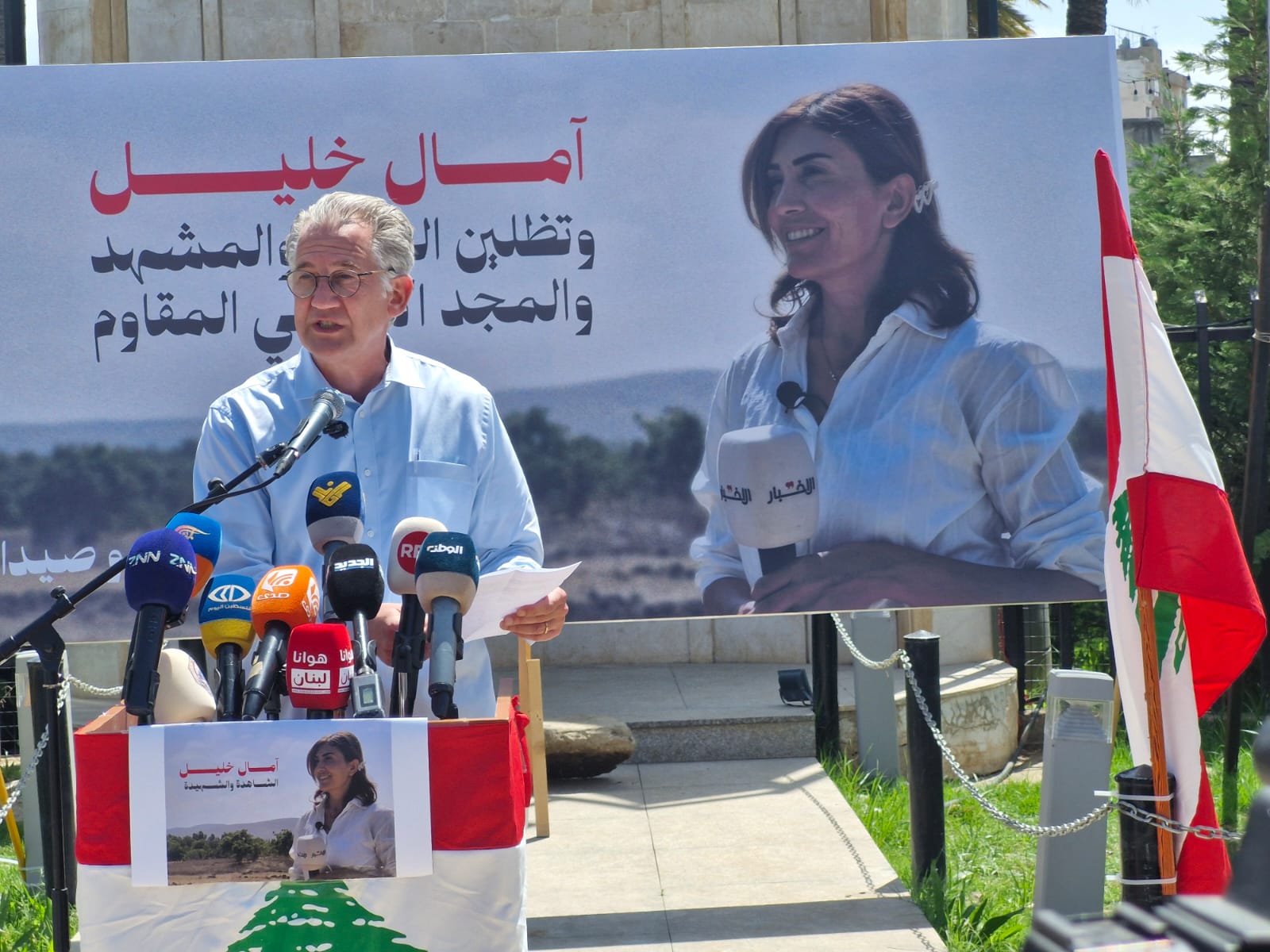 بدوره ألقى نقيب المحررين في لبنان جوزيف القصيفي كلمة عبر الهاتف اعتبر فيها أن اغتيال الشهيدة امال خليل جريمة نكراء موصوفة ومدانة باقصى التعابير وأن نقابة الصحافة منذ أن قصفت سيارتها ولجأت الى المبنى واكبت كل التطورات وأصدرت المواقف الشاجبة، مشيرا أن النقابة بصدد إرسال رسالة إلى الأمين العام للأمم المتحدة تتضمن الإضاءة على الجرائم الإسرائيلية بحق الصحافة والصحفيين لبنان الذين بلغ عددهم 27 الى جانب الجرحى والمعوقين من اجل ضمان عدم إفلات العدو من العقاب.