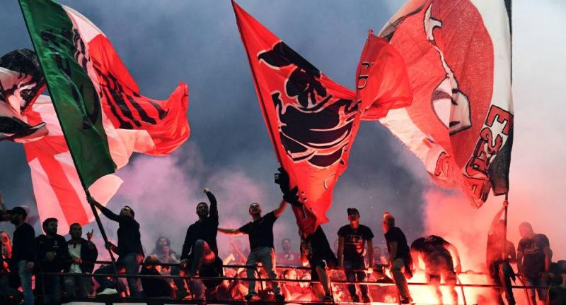 تداول نشطاء على مواقع التواصل الاجتماعي مقطعا مصورا لحظة مغادرة جماهير ملعب "سان سيرو" الإيطالي للملعب من أحد المخارج الرئيسية.