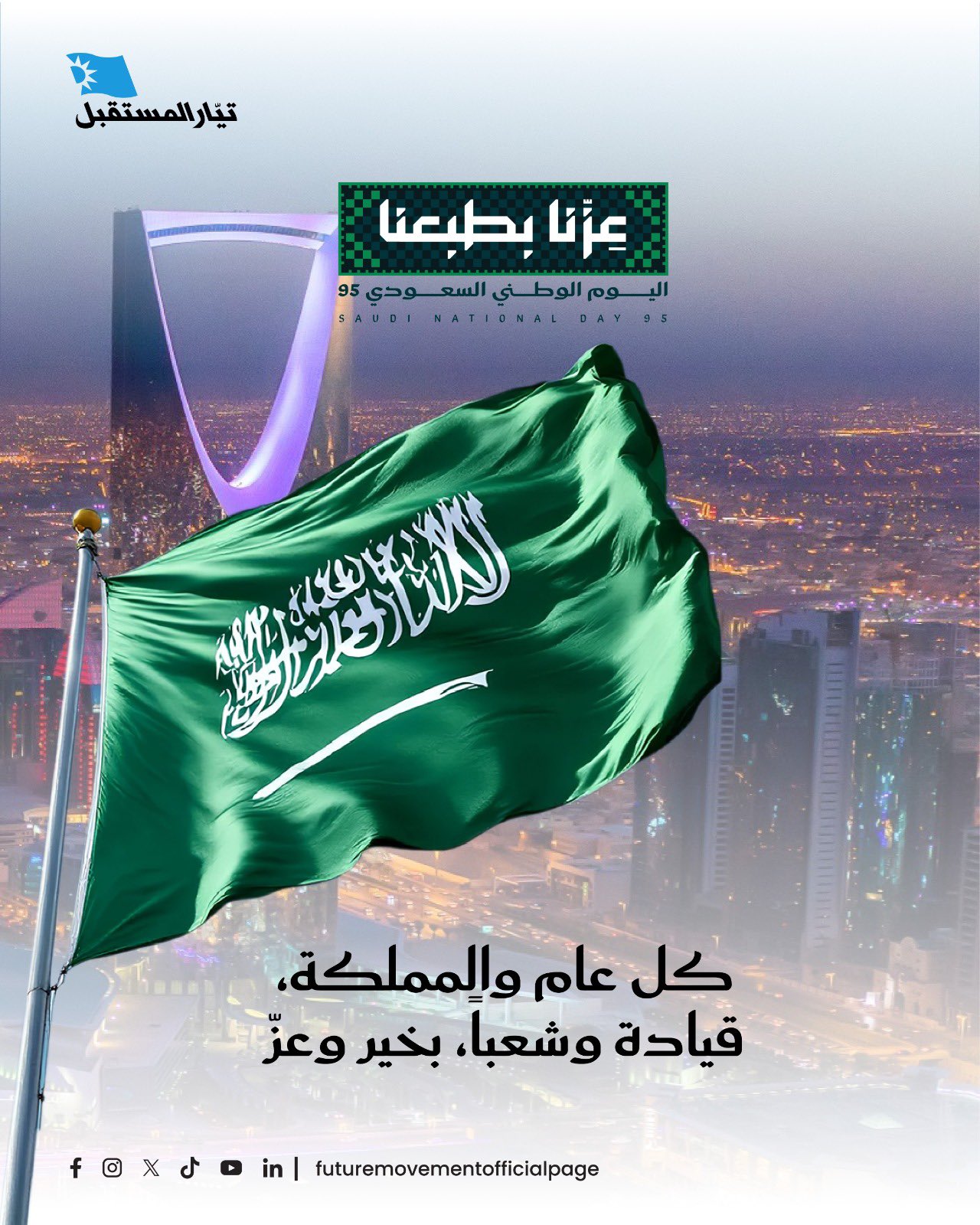 توجه الأمين العام لـ"تيار المستقبل" أحمد الحريري بالتهنئة إلى قيادة المملكة العربية السعودية وشعبها بمناسبة اليوم الوطني السعودي الـ 95.