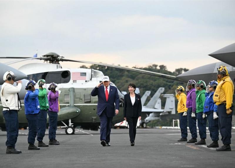 وخلال مؤتمر صحافي مشترك مع رئيسة وزراء اليابان سانايه تاكايتشي، أعلن ترامب موافقته على الدفعة الأولى من الصواريخ المخصصة لطائرات "إف-35" اليابانية، لافتاً إلى أنه صادق أيضاً على أعلى ميزانية دفاعية في تاريخ الولايات المتحدة، والتي تتجاوز تريليون دولار.