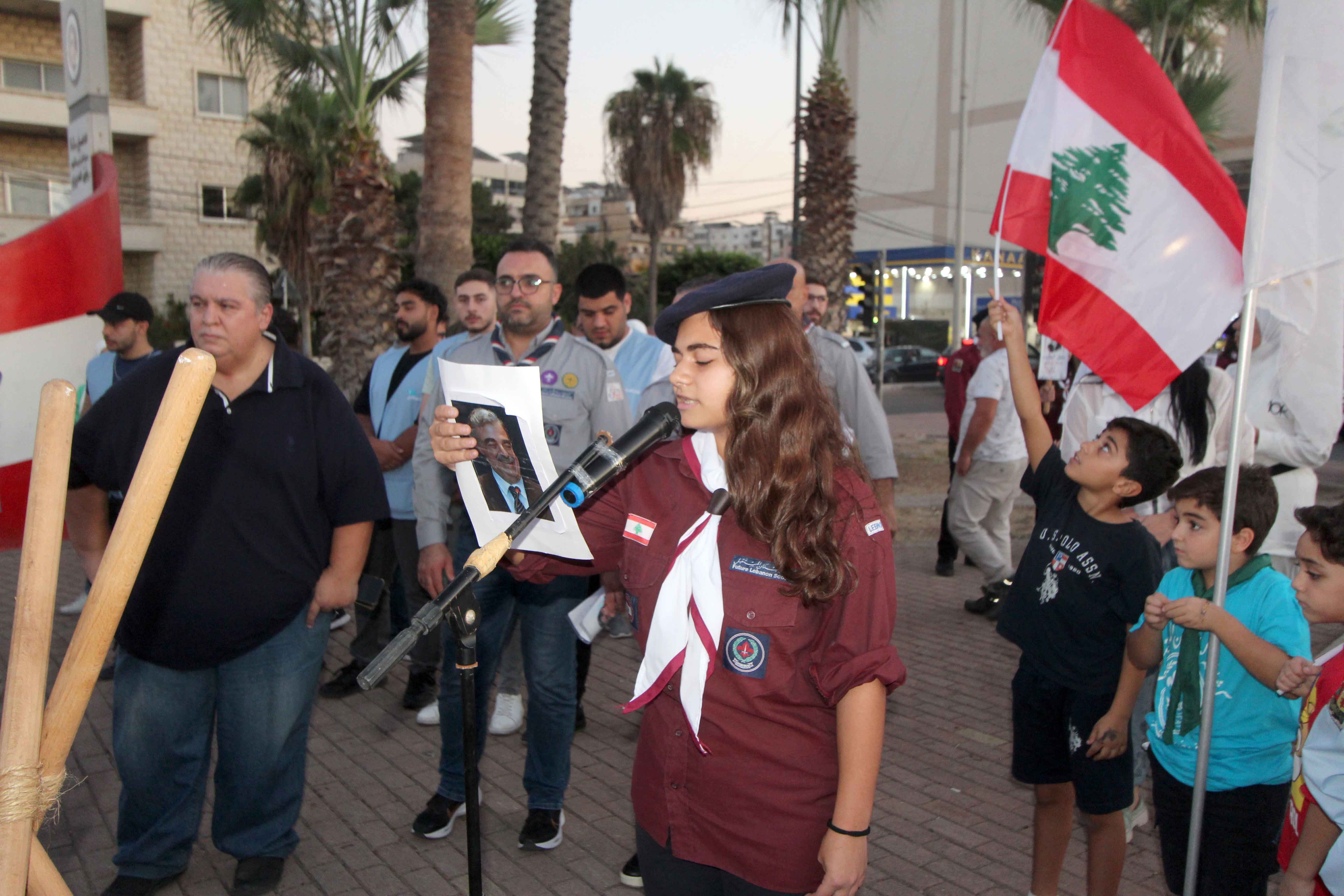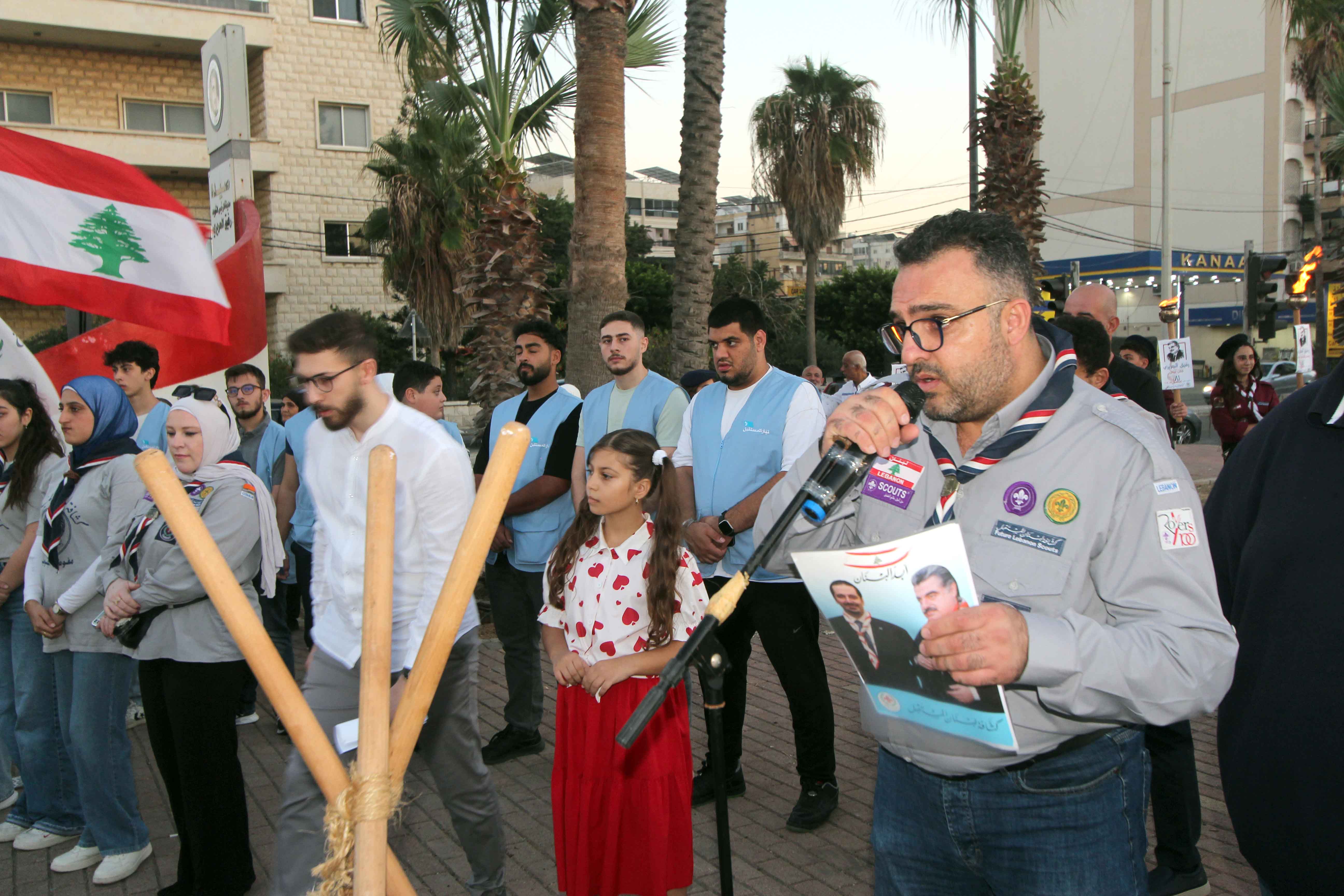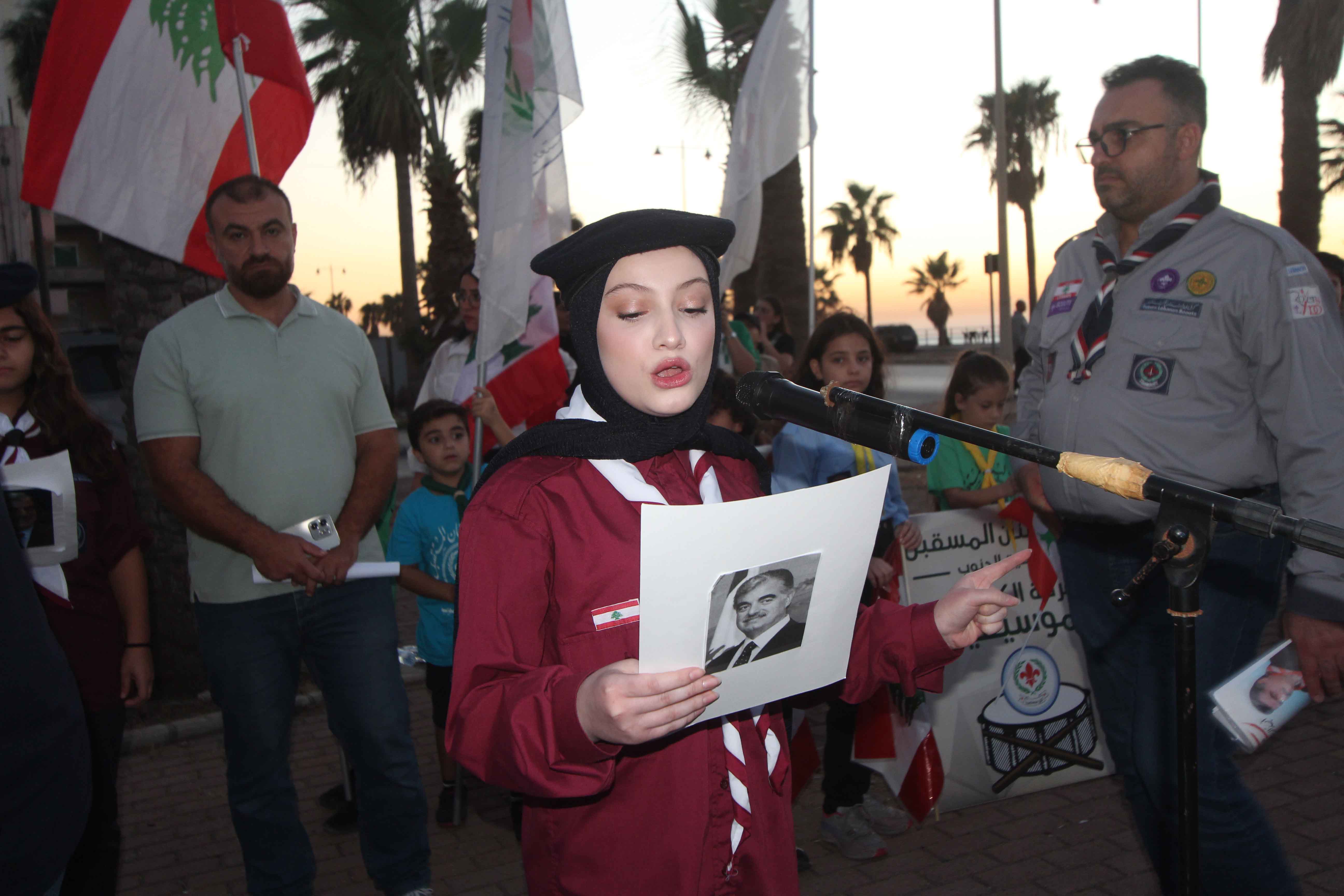 وبعد ترحيب وتقديم من القائد الكشفي محمد العربي القدسي، ألقى مفوض الجنوب القائد نبيل السيد كلمة بالمناسبة قال فيها: نقف اليوم لنحيي ذكرى مولد رجلٍ استثنائي، حمل في قلبه إيمانًا عميقًا بلبنان، وبقدرة أبنائه على صناعة الأمل من رحم الصعاب. كان مدرسة في الوطنية والعطاء والإنسانية. آمن الرئيس الشهيد بأن الاستثمار الحقيقي هو في الإنسان، فكان رائدًا في دعم التعليم، وفي بناء المؤسسات التي تعزّز الكرامة والفرص لكل لبناني. ومن خلال رؤيته، تحوّل الحلم بلبنان المزدهر إلى مشروعٍ عمل عليه بكل صدقٍ وإصرار. ولم ينسَ يومًا الشباب، فكان دائم الإيمان بأنّهم أمل المستقبل، لذلك دعم الكشّاف والحركة الكشفية، مؤمنًا برسالتها التربوية والوطنية، وبأنها تصنع جيلاً يتحمّل المسؤولية ويخدم المجتمع بروح الانتماء والانضباط. في ذكرى مولده، نجدّد العهد على أن نبقى أوفياء لمسيرته.