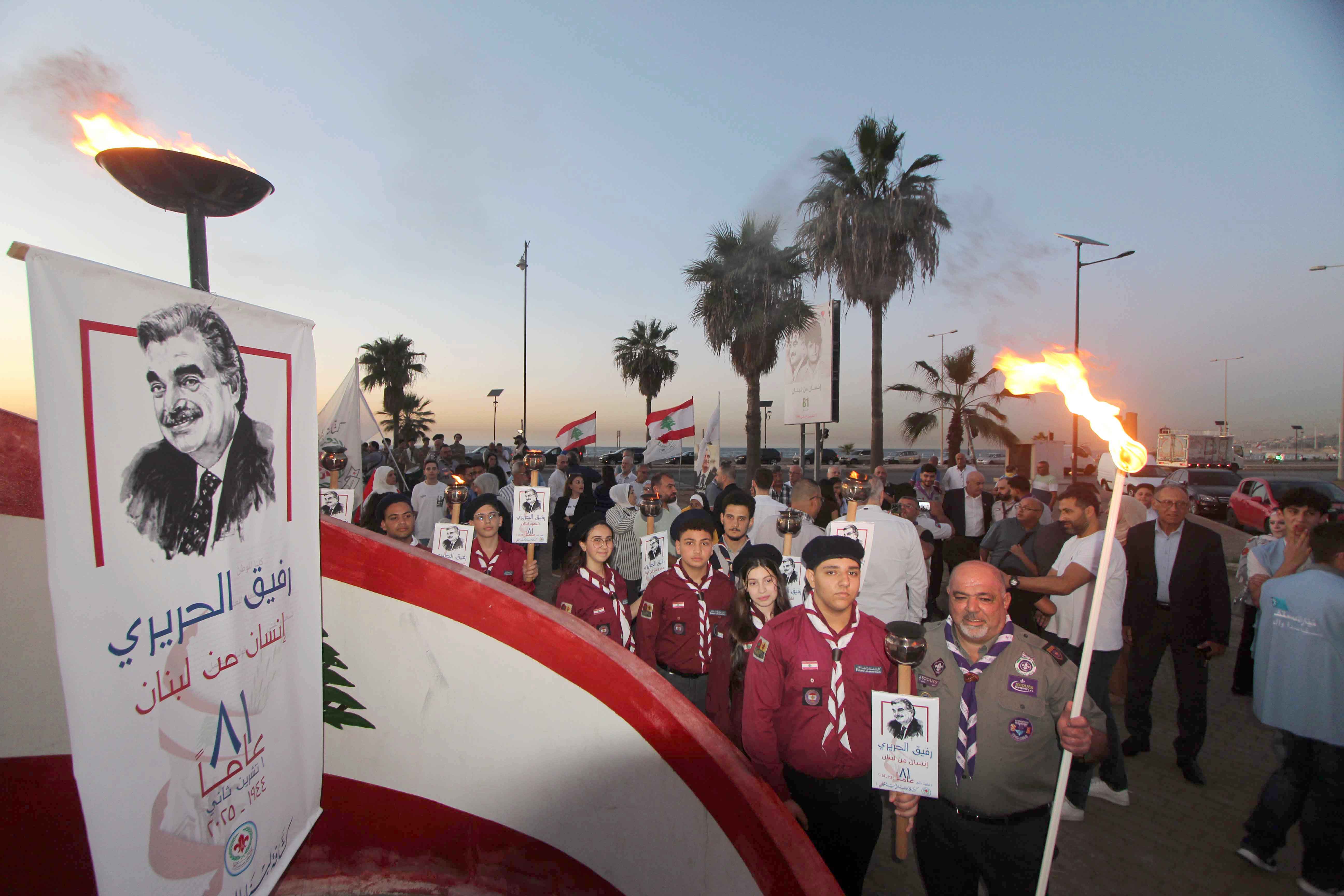 برعاية رئيسة مؤسسة الحريري السيدة بهية الحريري ، ولمناسبة الذكرى الحادية والثمانين لميلاد الرئيس الشهيد رفيق الحريري في 1 تشرين الثاني 1944، وتحت شعار "إنسان من لبنان " أقامت "جمعية كشافة لبنان المستقبل – مفوضية الجنوب " احتفالاً أمام النصب التذكاري للرئيس الشهيد عند مدخل بولفار رفيق الحريري البحري ، تخلله إضاءة شعلة "الوفاء لرفيق الحريري " وعزف موسيقى كشفية تحيةً لصاحب الذكرى في عيد ميلاده ، وذلك بمشاركة "قطاع الشباب في تيار المستقبل – منسقية صيدا والجنوب".